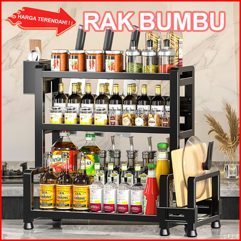 Bisa Codrak Bumbu Dapur Stainless Steel Rak Bumbu Rak Dapur Serbaguna Rak Botol Bumbu