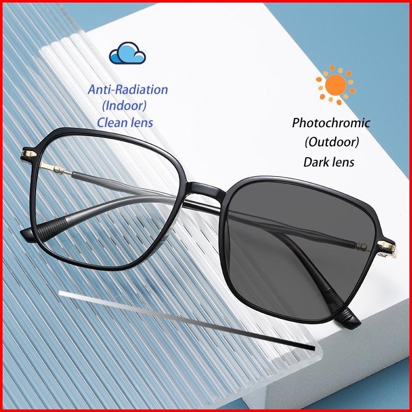 Kacamata Lensa Photocromic Style Korea Bingkai Retro Petak Eyeglasses