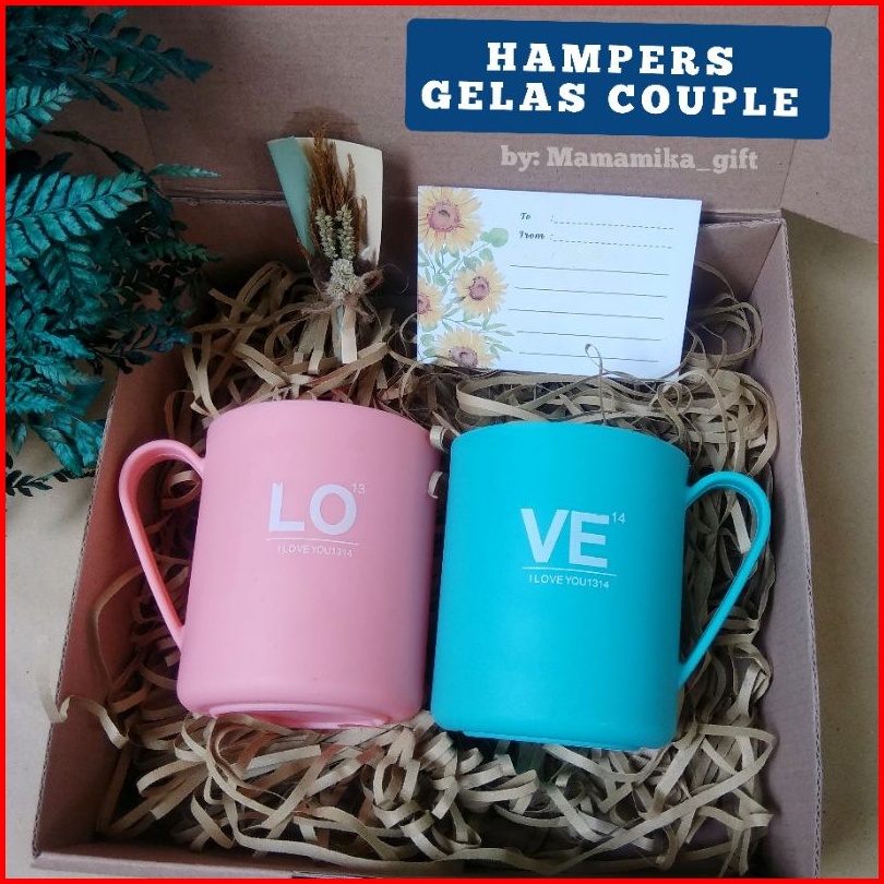 Hampers Mug Couple Plastik Kado Ulang Tahun Gelas Plastik Hadiah Pernikahan