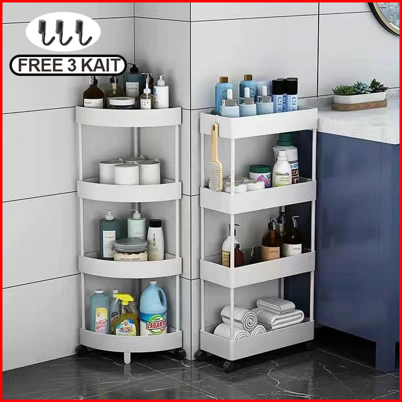 Square Segi Tiga Rak Dapur Rak Toilet Rak Susun Serbaguna Persegi Rak Dorong Rak Salon Rak Troli 3 4 Tingkat Dengan Roda