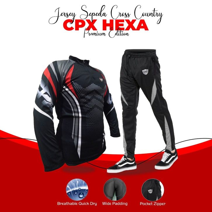 Setelan Jersey Sepeda CPX Sport Baju Gowes Pria MTB Roadbike Quick Dry Celana Panjang Padding Busa Satu Pasang Jersey