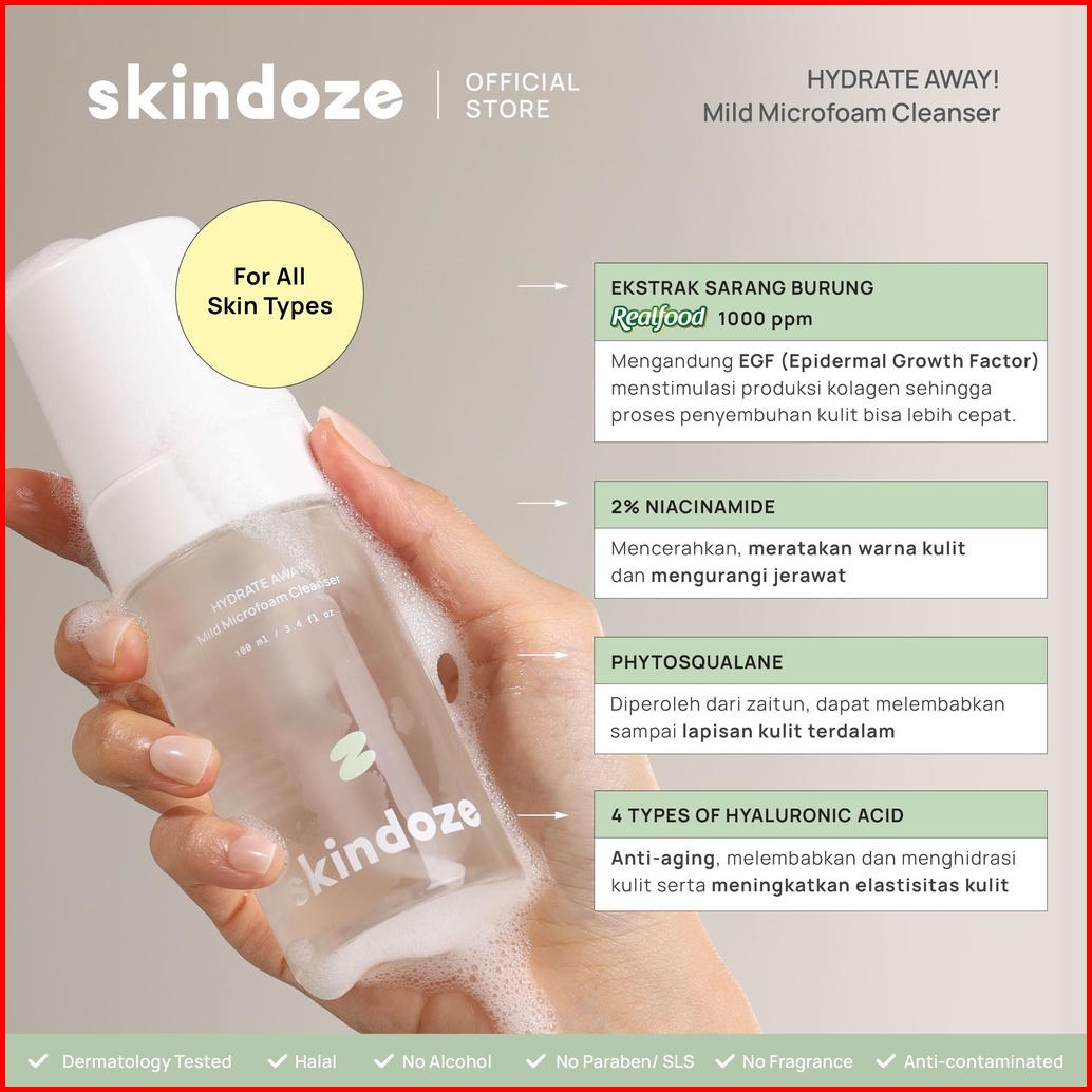 Skindoze Hydrating Facial Foam Cleanser Pembersih Wajah Sabun Muka Face Wash Foam Wash Birds Nest Skincare Brightening P