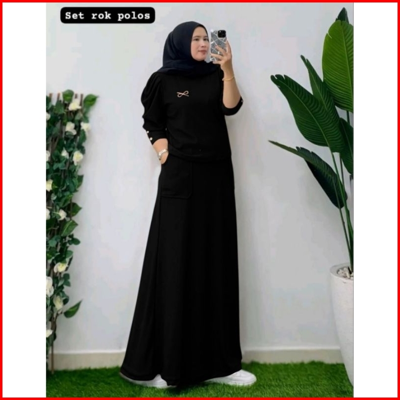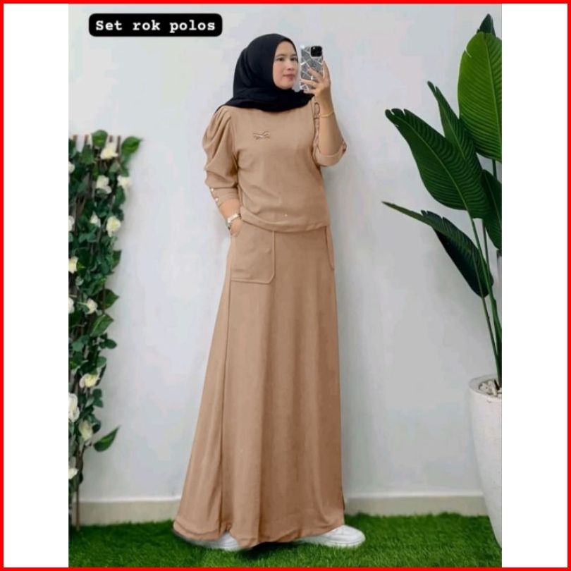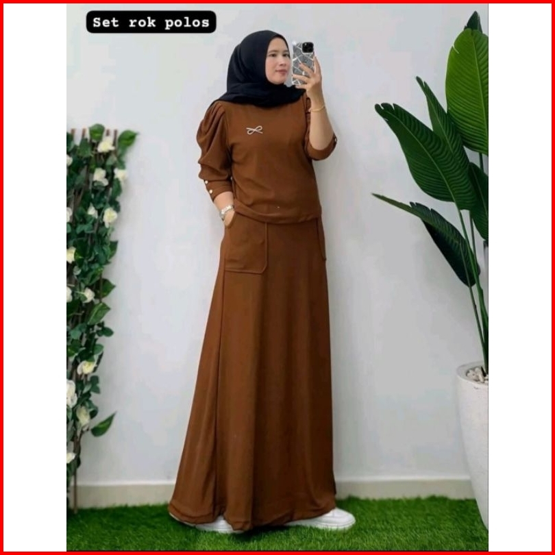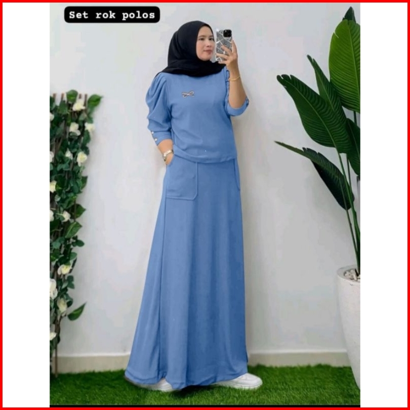 Set Rok Polos Setelan Wanita Setelan Rok Set Muslim