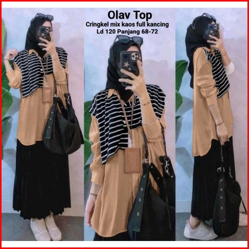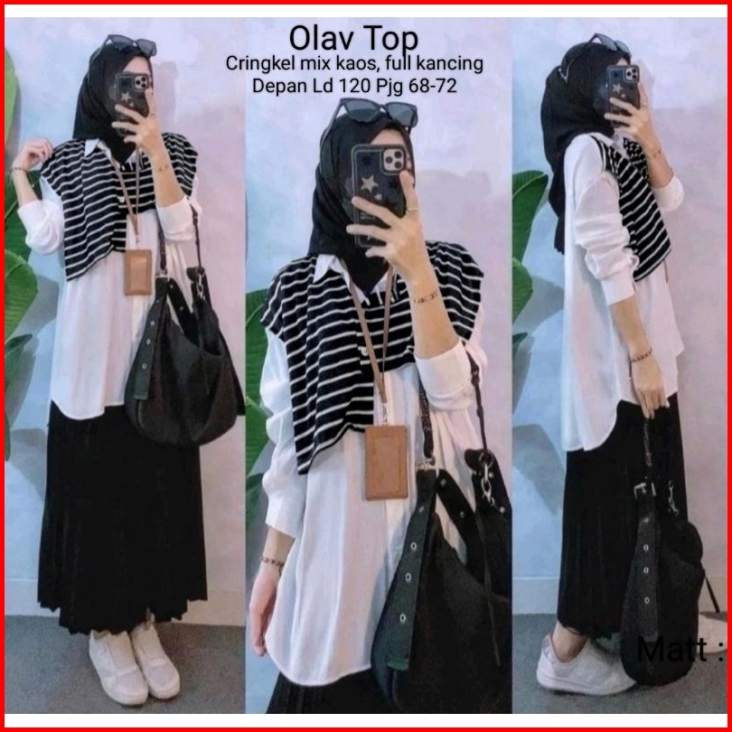 Olav Top Kemeja Kantor Kemeja Hitam Putih Atasan Wanita Blouse Wanita Busana Muslim Kemeja Healing Busana Wanita Pakaian