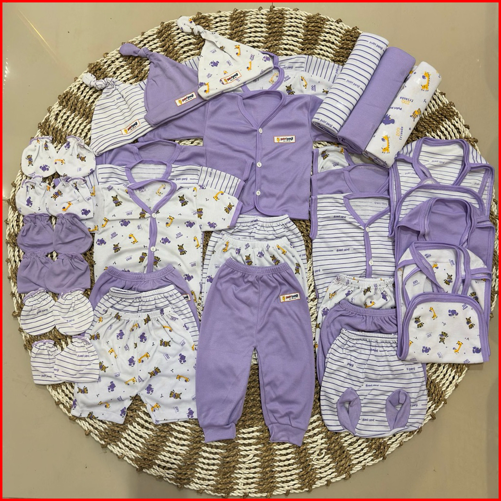 Paket Baju Bayi Baru Lahirlengkap 33pcs Perlengkapan Bayi Baru Lahir Seri Lilac