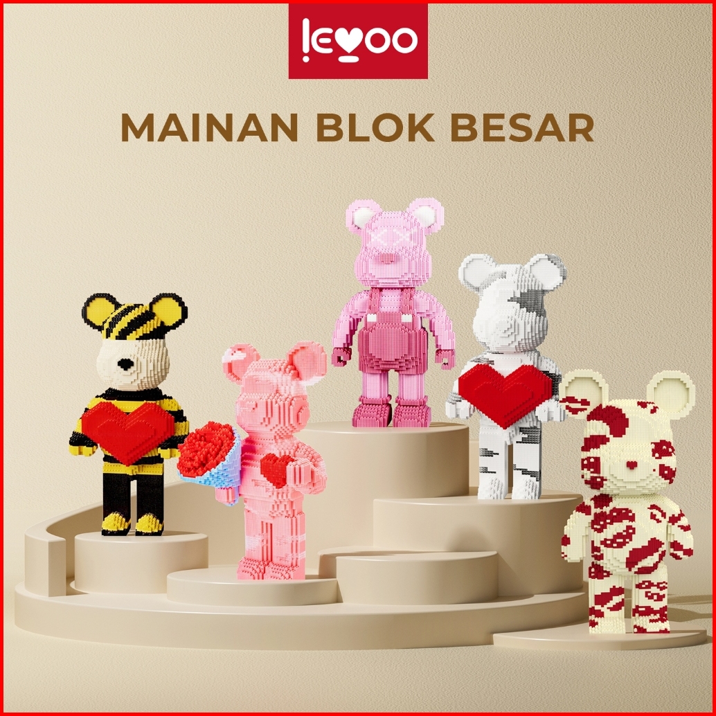 Mainan Blok Penyusun Partikel Plastik Berbentuk Beruang Lucu Ekstra Besar