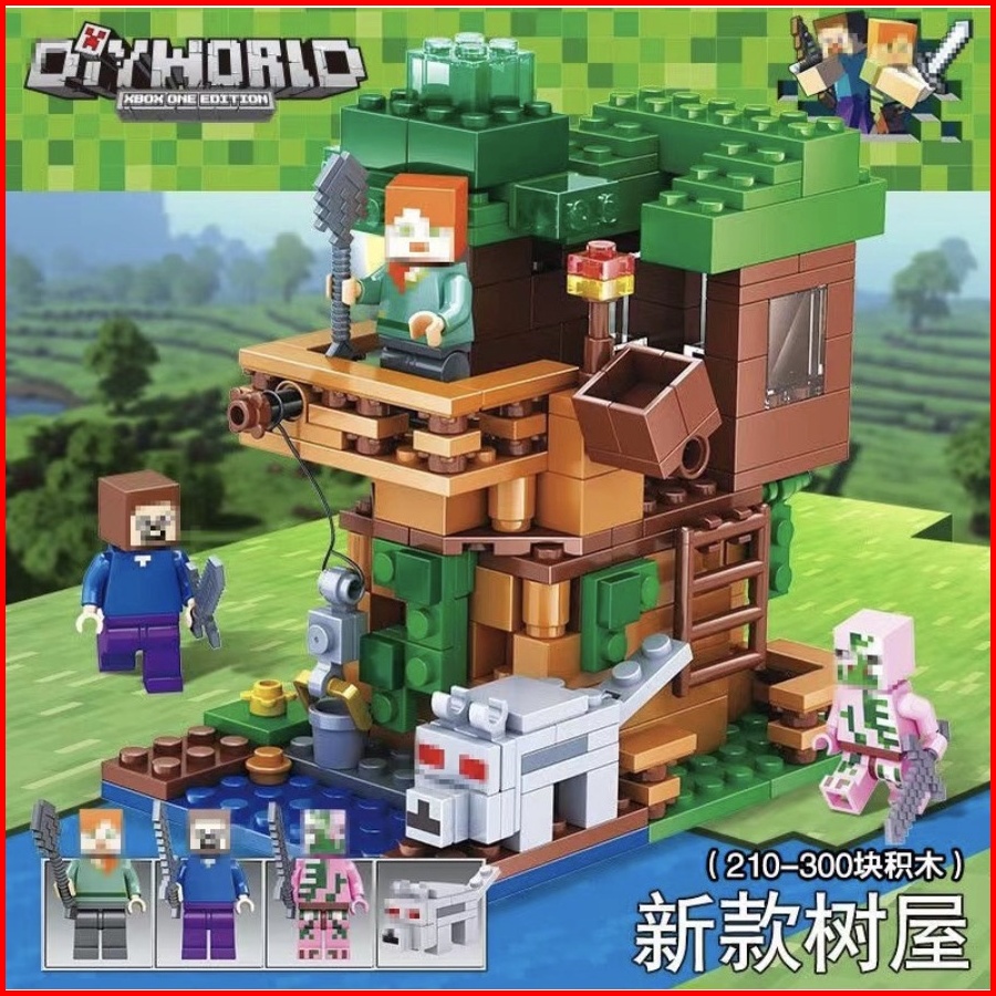 Block - My World Mainan Balok Bangunsusun Model Bentuk Rumah Pohon Hutan Untuk Diyedukasi Anak Puzzle