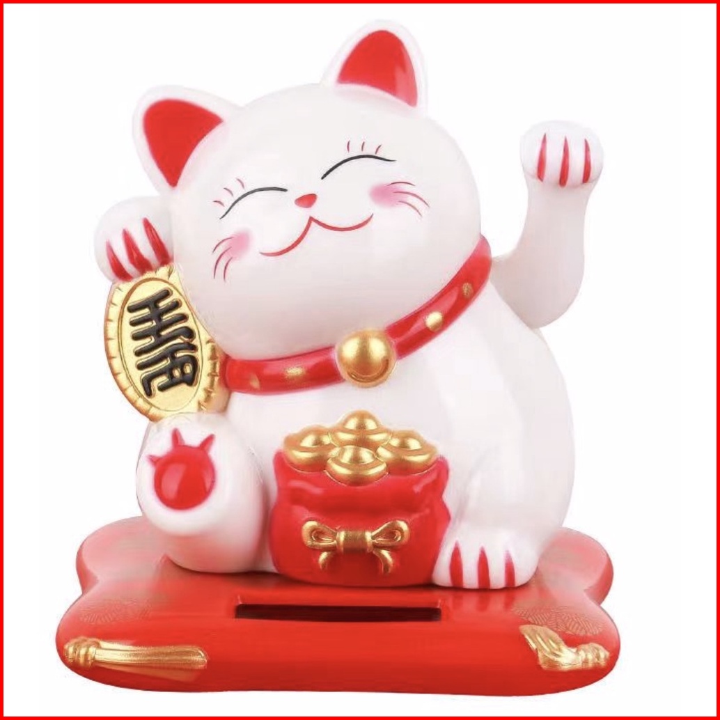 Patung Pajangan Kucing Hoki Keberuntungan Lucky Cat Rejeki Maneki Neko Maneko Neki Tangan Goyang