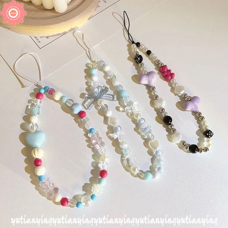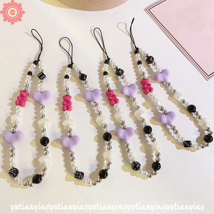 GANTUNGAN HP KOREA 3D LUCU PESONA BERUANG CINTA HATI IKATAN SIMPUL PONSEL RANTAI UNTUK WANITA PEREMPUAN PERHIASAN TALI