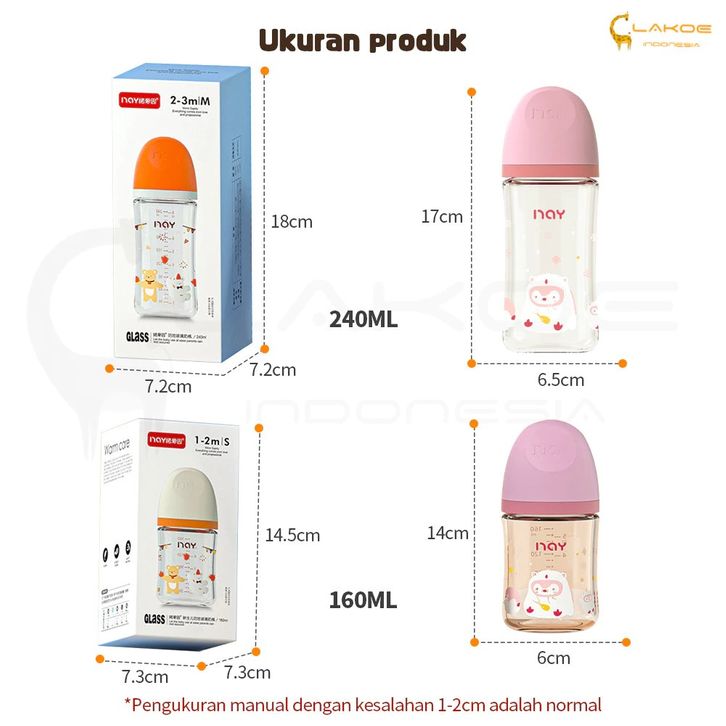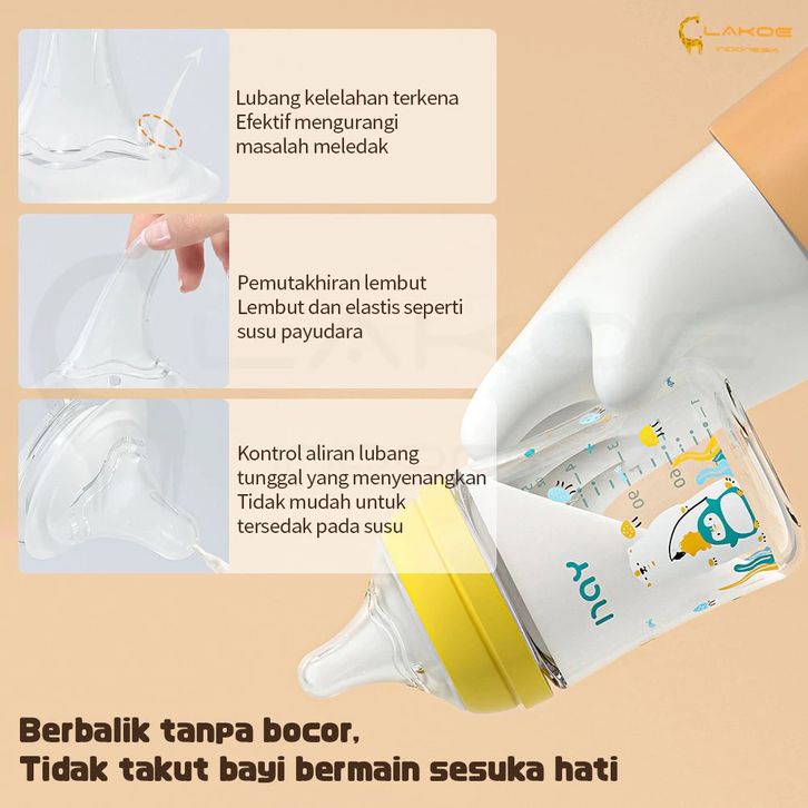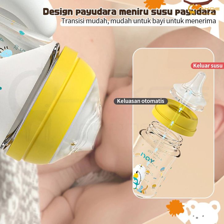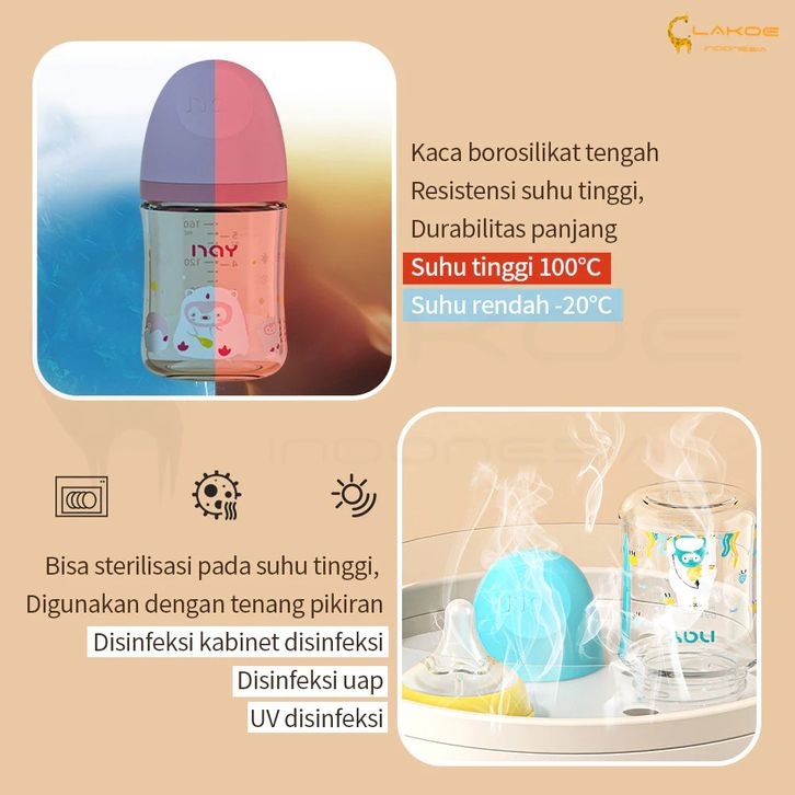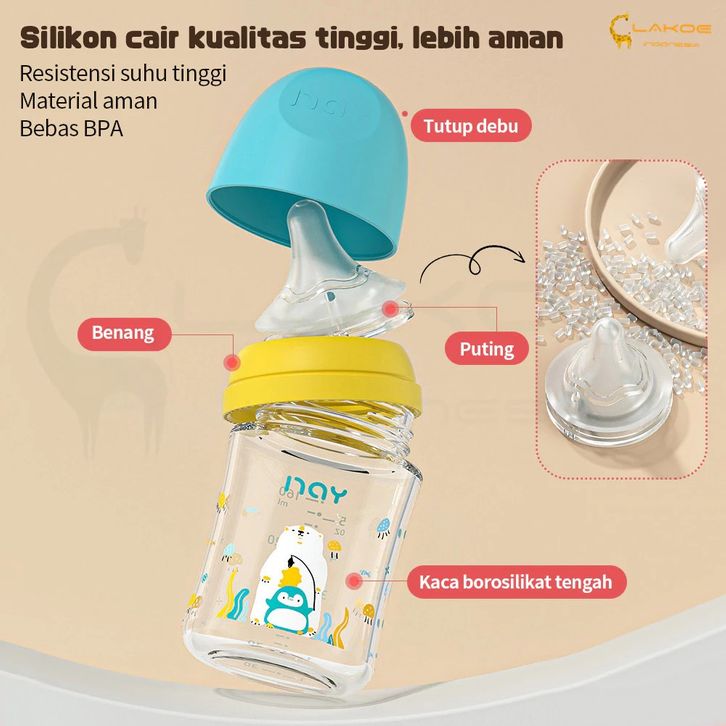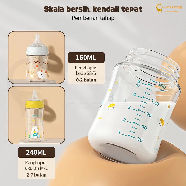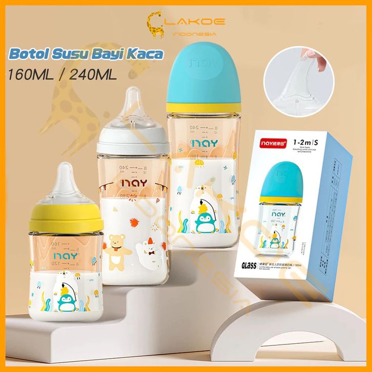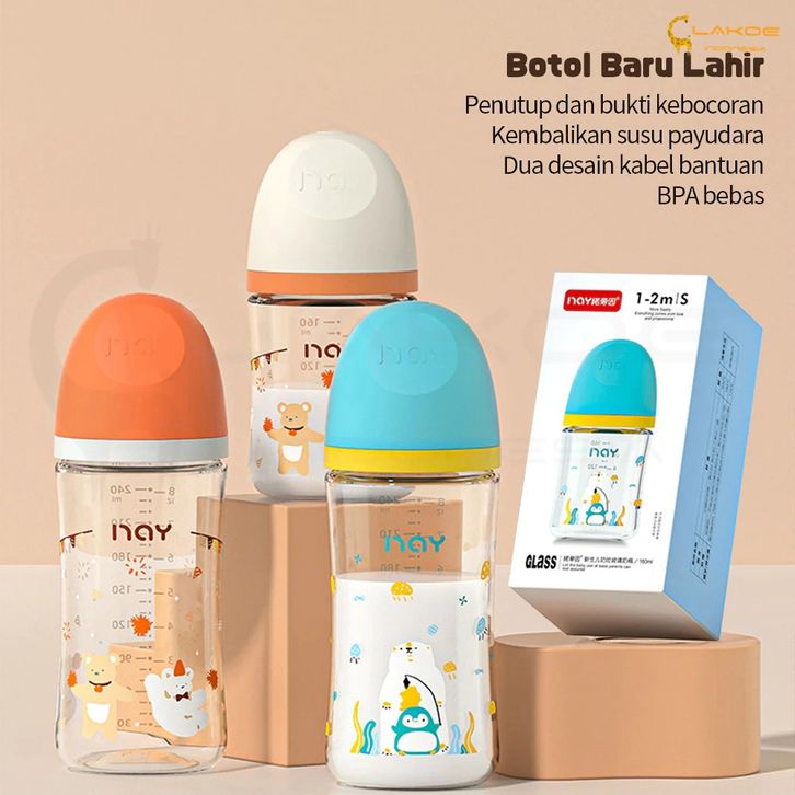 Botol Susu Bayi Kaca Asi 160/240ML Botol Susu Bayi Anti Kolik