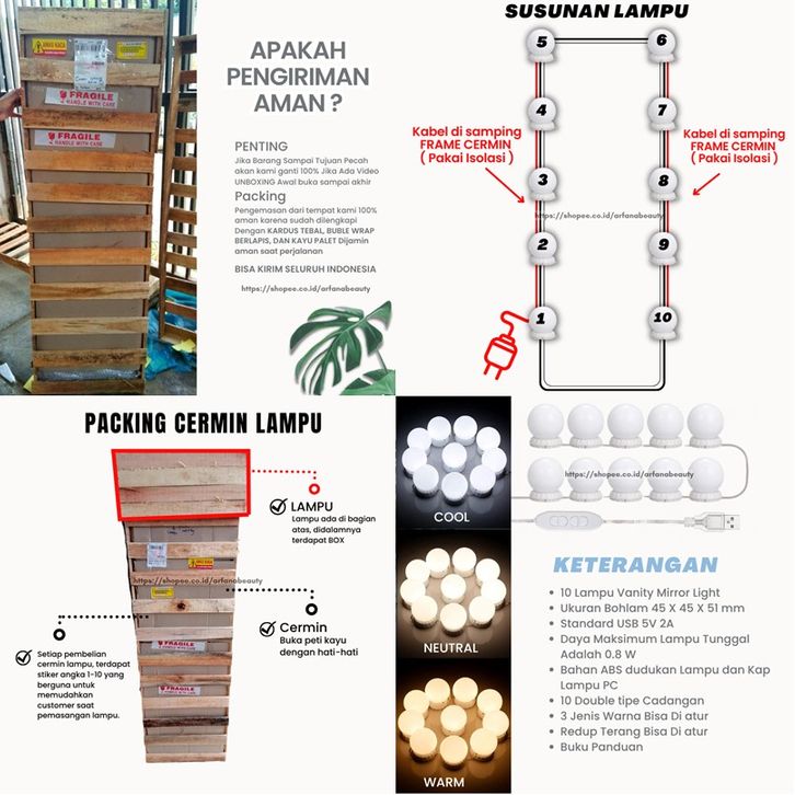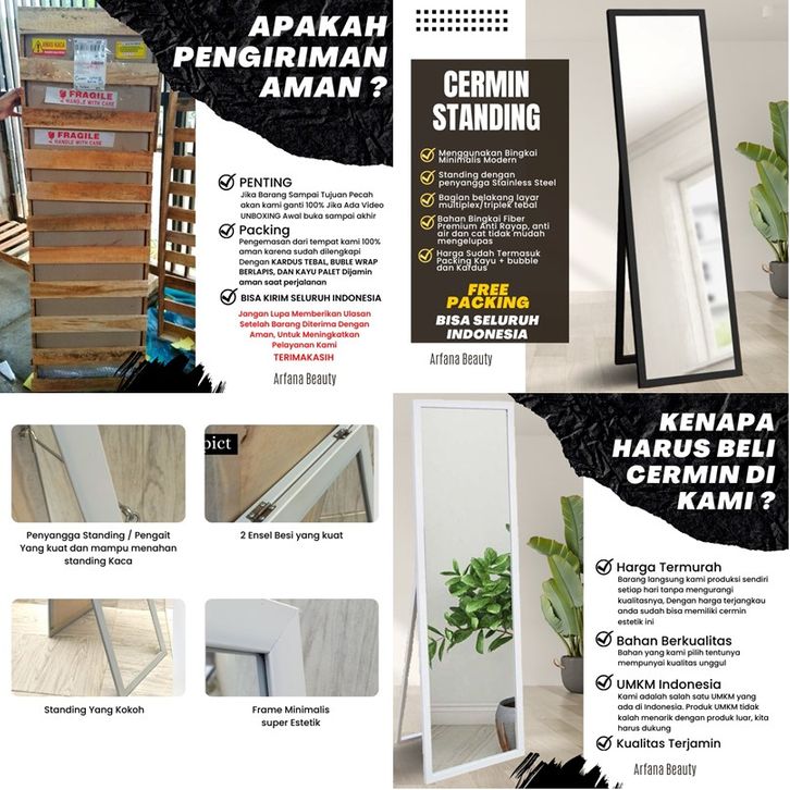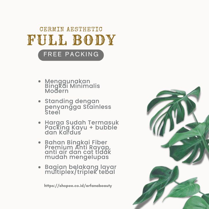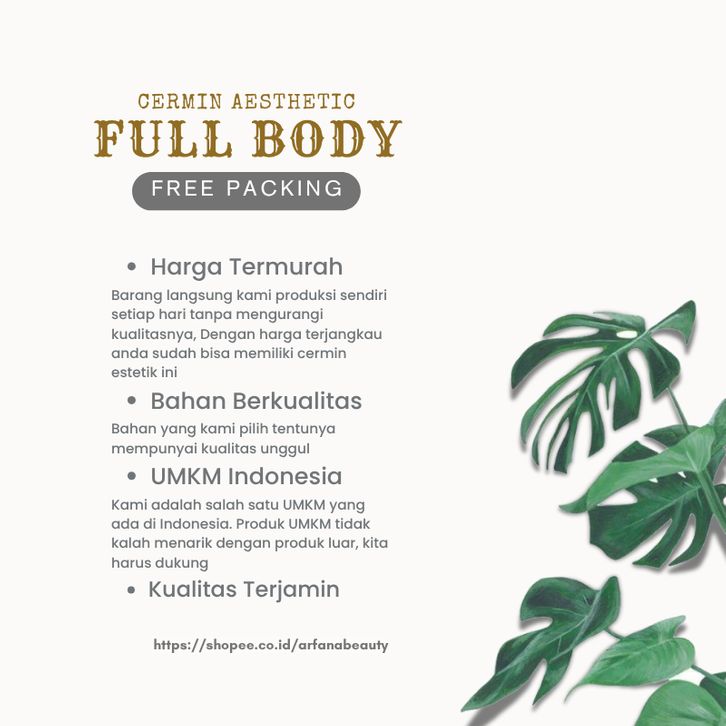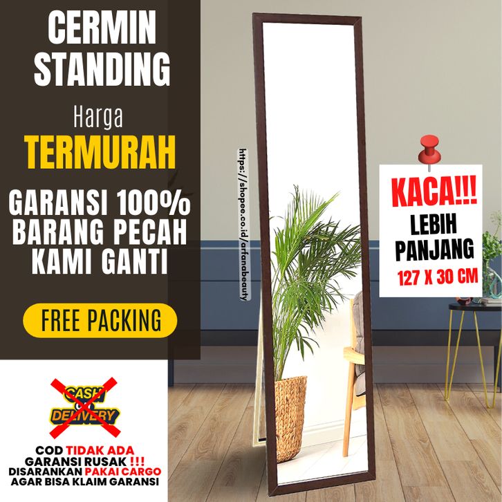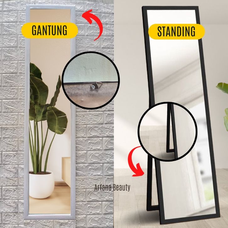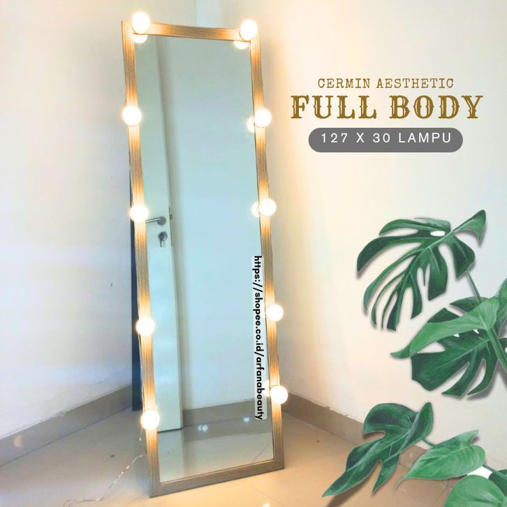 Cermin Aesthetic Vanity Mirror Full Body Kaca Standing Berdiri Dekorasi Penghias Kamar Cermin Lampu Makeup Minimalis