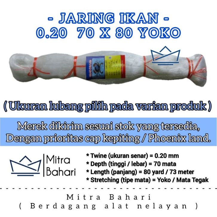 Jaring Ikan JARING IKAN 0.20 70X80 YOKO / PUKAT 020 / JARING SENAR 0.20 / JARING KEPITING / JARING PHOENIX LAND / PUKAT