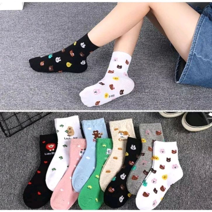 Kaos Kaki cewe Remaja Dewasa 12 Pasang Motif Random Kaos Kaki Sekolah Olahraga Kasual Bahan Tebal Halus adem