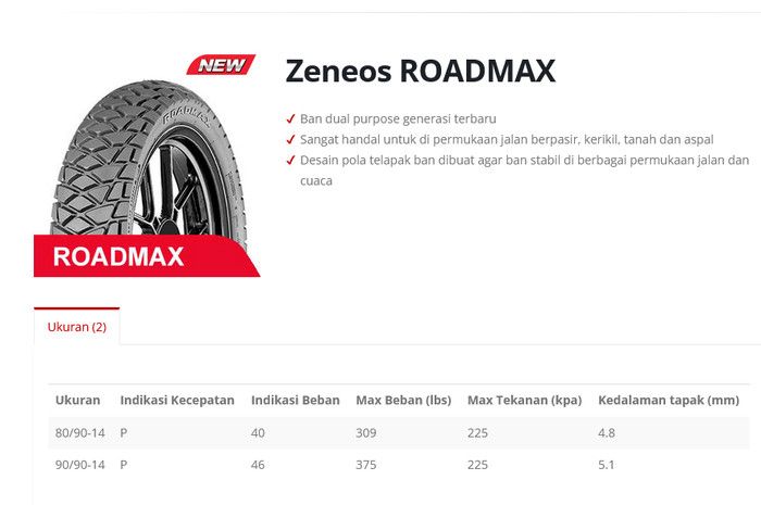 ZENEOS ROADMAX 90 90 14 BAN LUAR MOTOR MATIC TUBELESS SEMI TRAIL