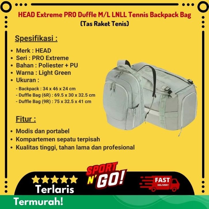 HEAD Extreme PRO Duffle M/L LNLL Tennis Backpack Bag - Tas Raket Tenis
