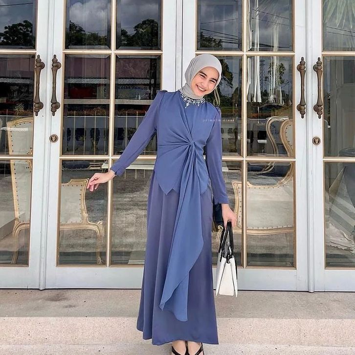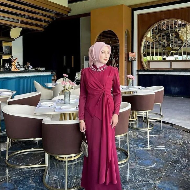 Dress Pesta Wanita Elegan Gamis Warna Teracota Bridesmaid Gamis Remaja Kekinian Matt Velvet Mix Ceruty