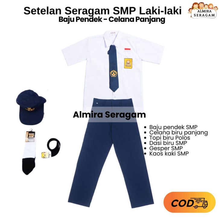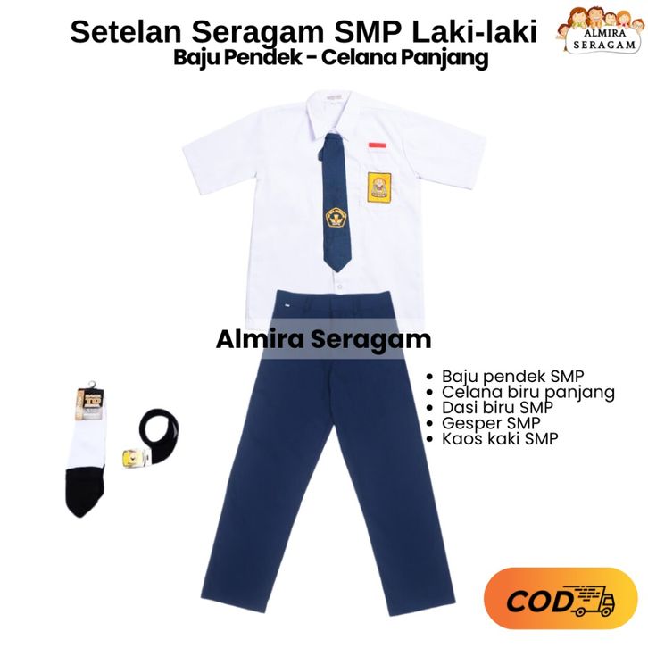 Seragam Sekolah SMP LAKI BAJU PENDEK CELANA PANJANG Cowok Setelan Super Lengkap Gratis Ongkir