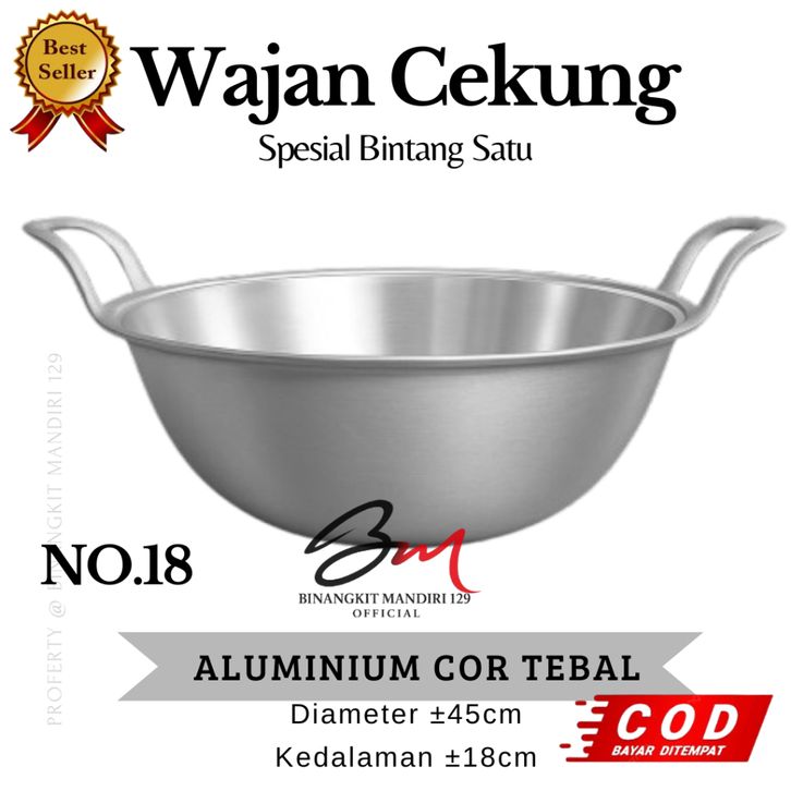 Wajan ukuran jumbo Wajan Kuali penggorengan jumbo ukuran no 22 aluminium cor anti lengket kuali cekung no 22