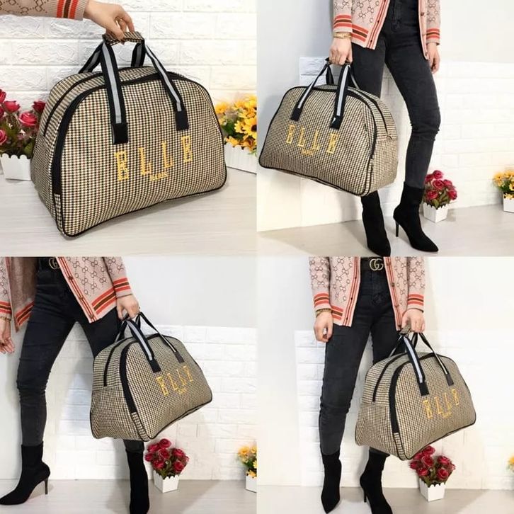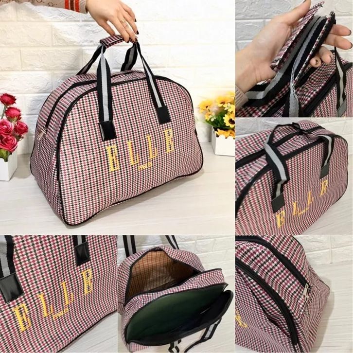 TAS TRAVELING - Tas Travel Wanita / Tas Pakaian ELLE SIZE BESAR Motif Kotak-Kotak 3 Warna/Tas Pakaian Tenteng Wanita