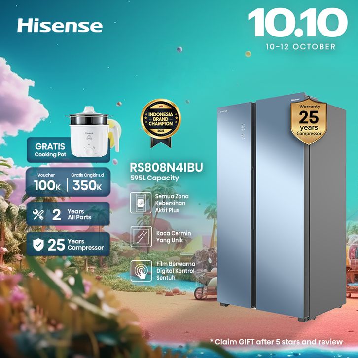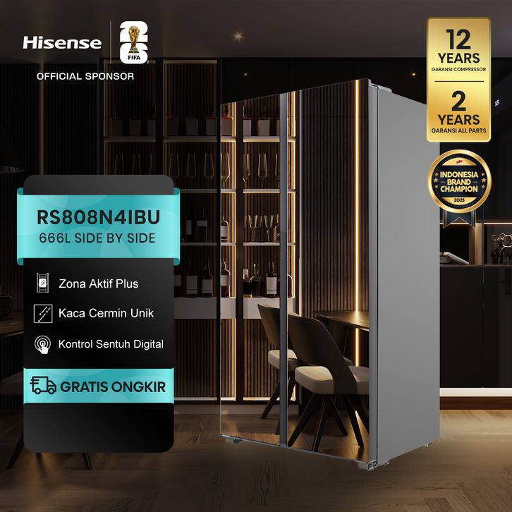 Hisense Kulkas - Side by Side - RS808N4IBU Kapasitas 595L - Refrigerator - Black