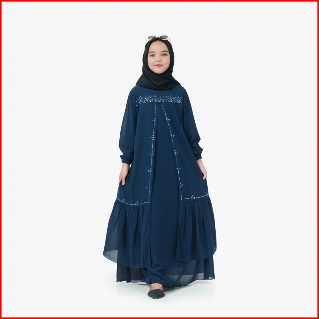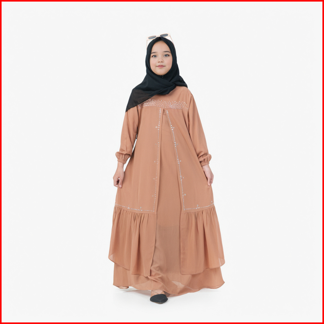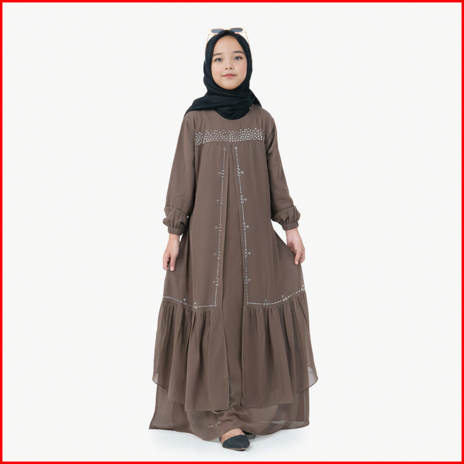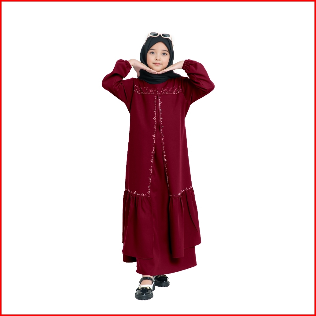 Zaskia Dress Gamis Anak Perempuan Usia 5th-13th Bahan Ceruty Babydoll Mix Swaroski Baju Lebaran 2025