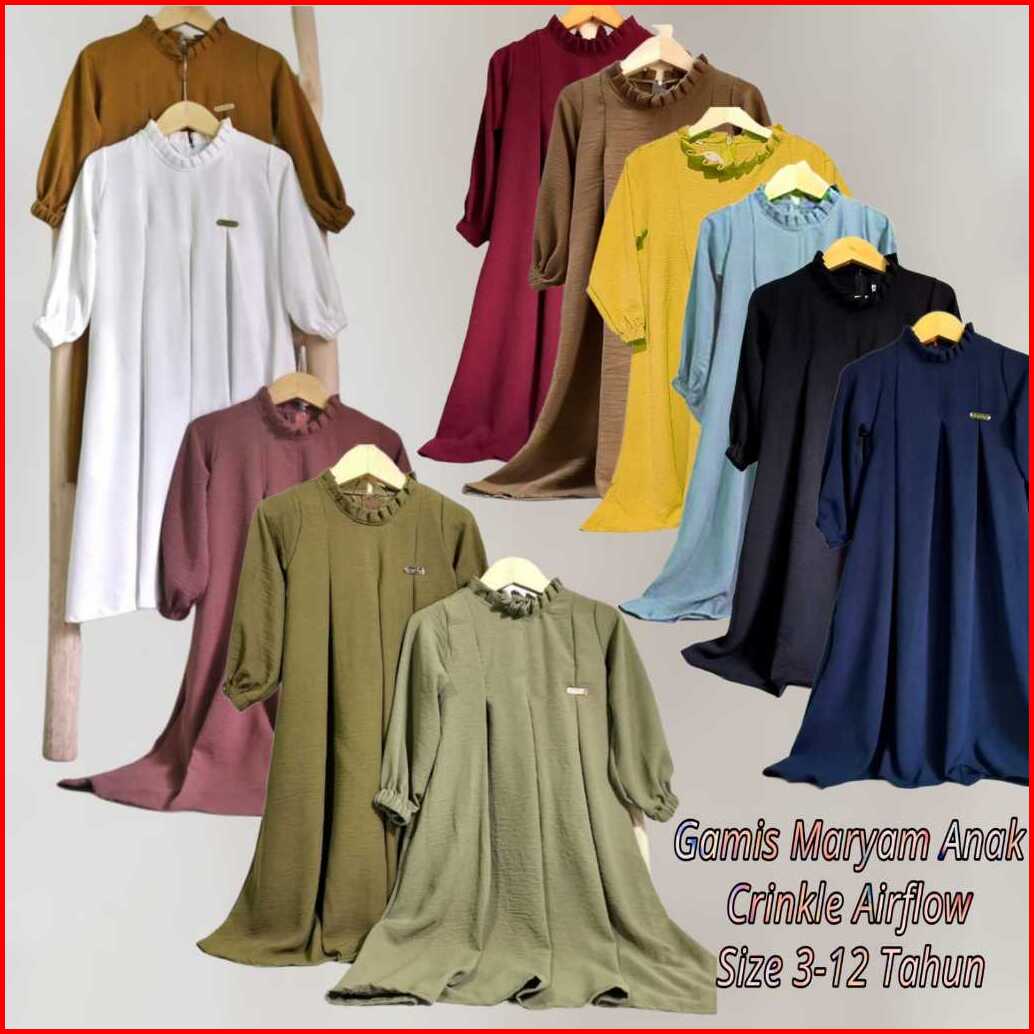 Gamis Anak Crinkle Airflow Premium Series Maryam Shakilla Inara Usia 3-12 Tahun Simple Polos Elegant Mewah Buat Manasik
