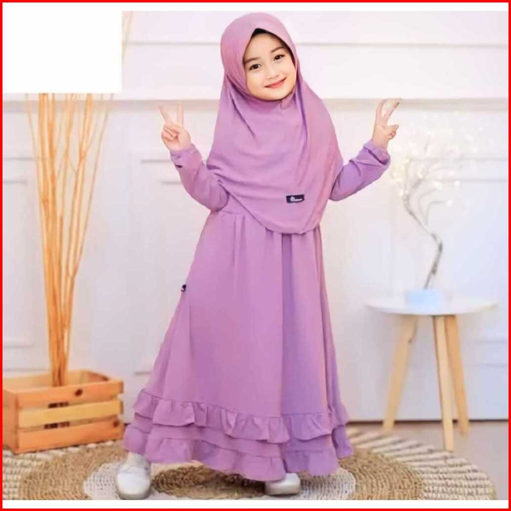 Gamis Anak Delisha Kerudung Usia 3-12 Tahun Crinkle