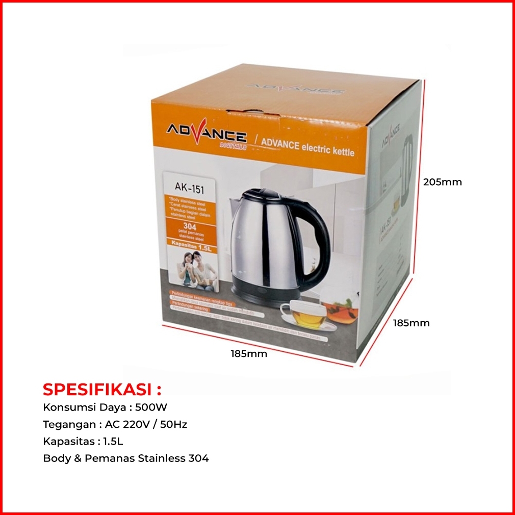 Advance Teko Listrik 1.5 Liter Ketel Listrik Kettle 500w Ak151 Garansi Resmi 1 Tahun