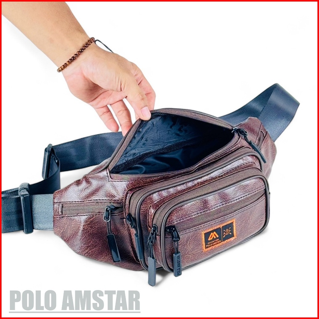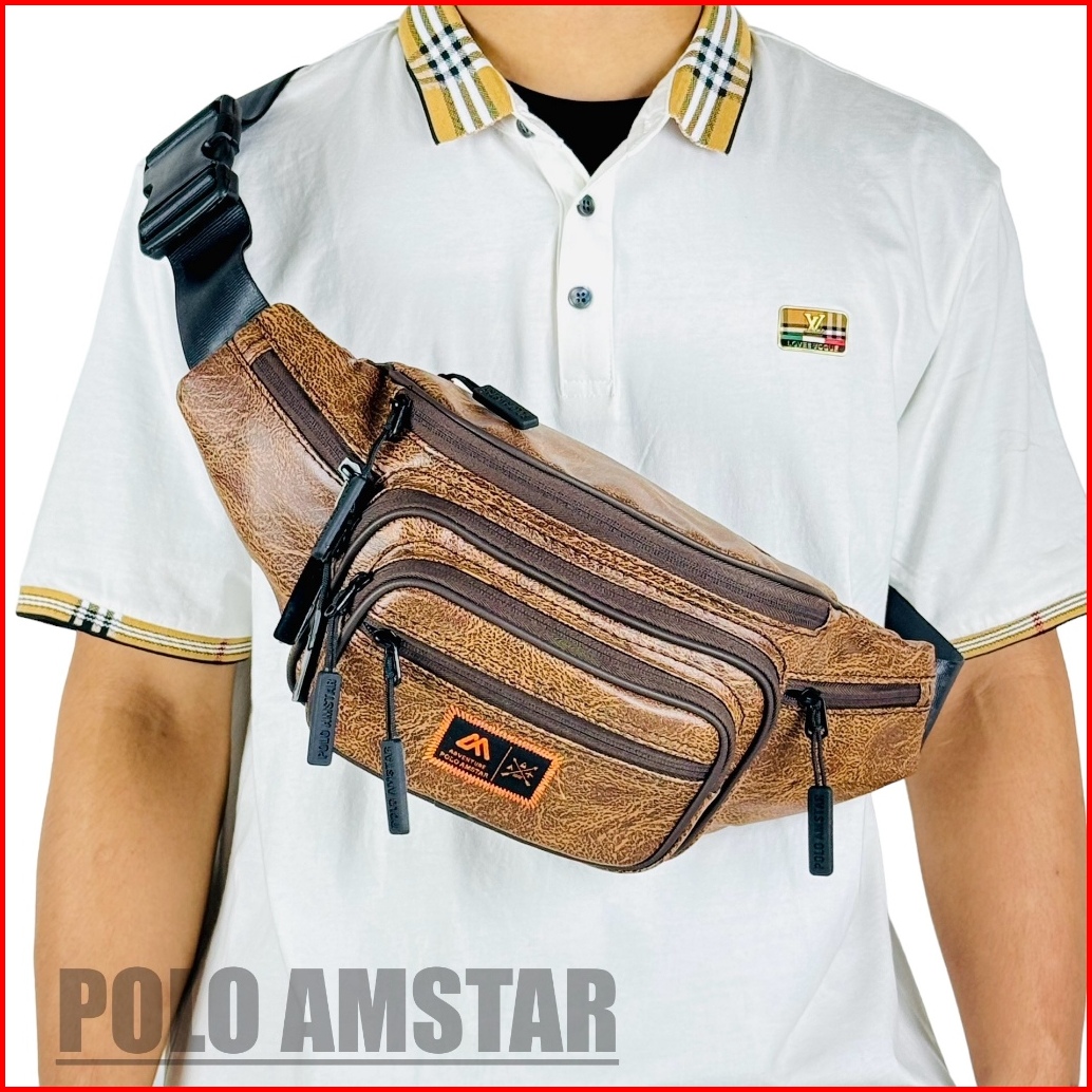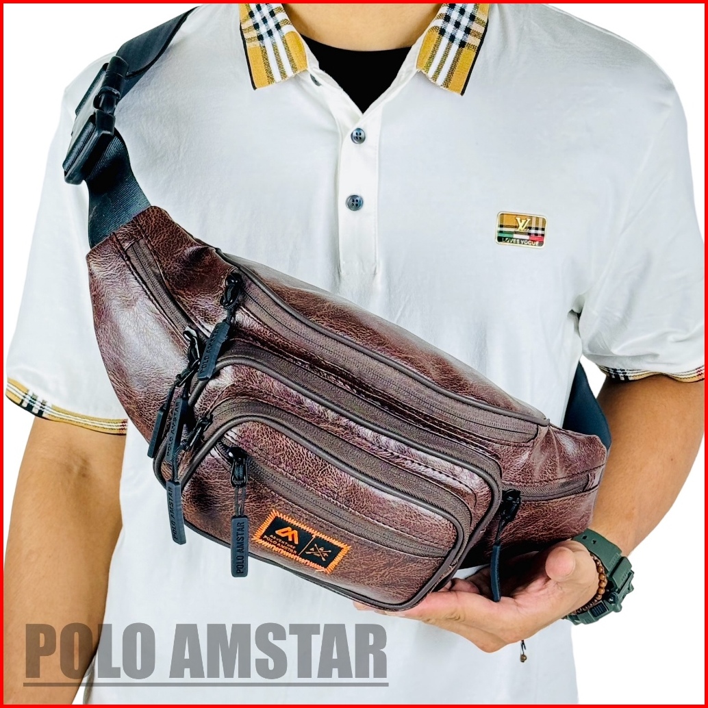 Tas Pinggang Pria Wanita Kulit Pu Original Polo Amstar Tas Selempang Anti Air Waistbag Casual