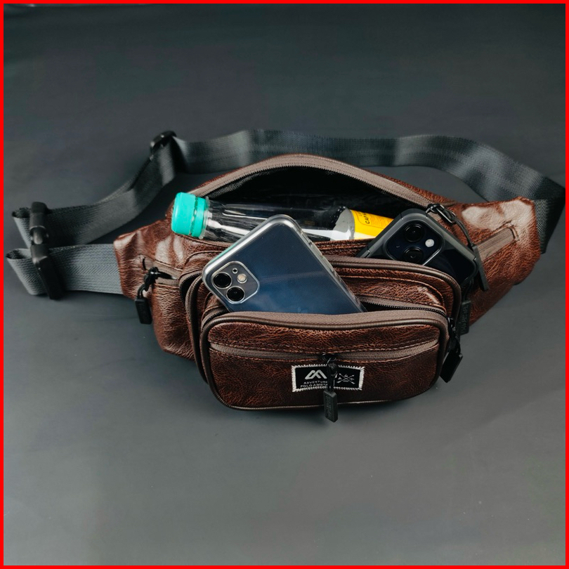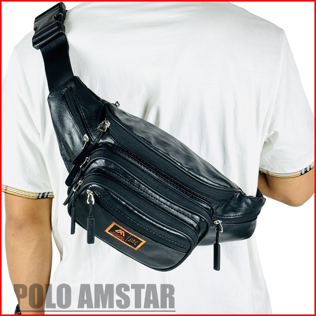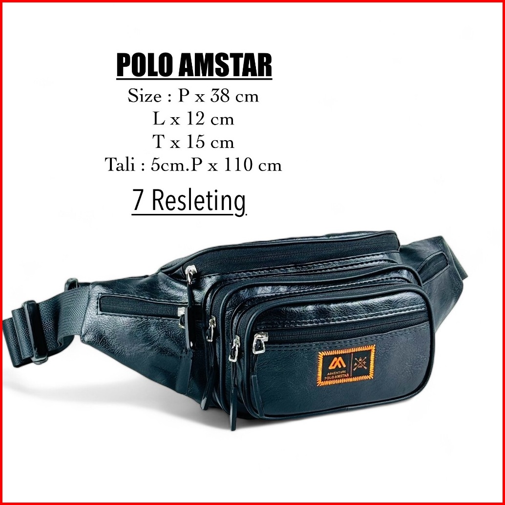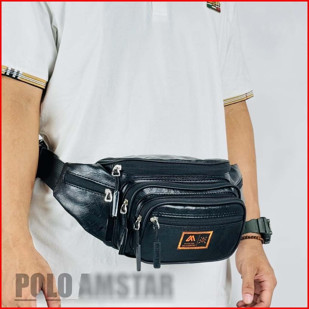 Tas Pinggang Pria Wanita Kulit Pu Original Polo Amstar Tas Selempang Anti Air Waistbag Casual