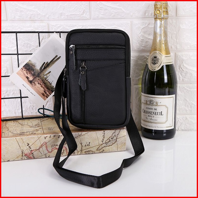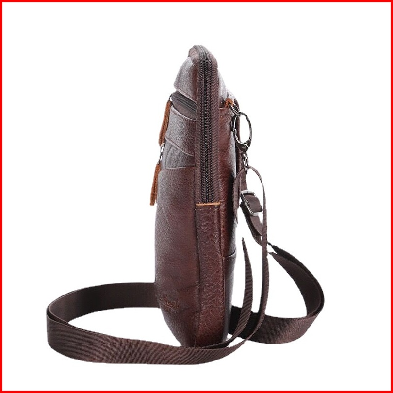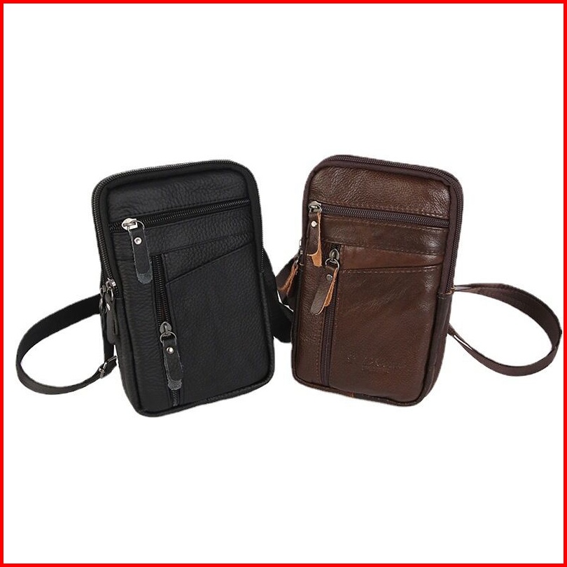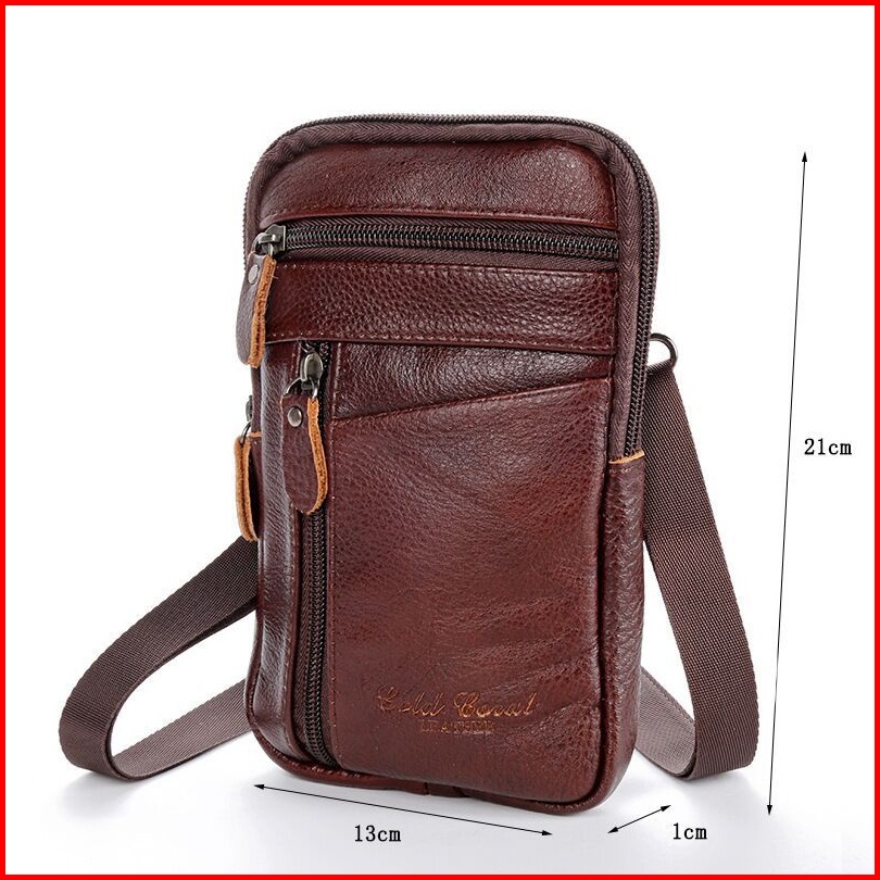 Tas Pinggang Hp Pria Kulit Asli Tas Selempang Sabuk Multifungsi Model Slim Vintage Kompartemen Hp Kartu Bahan Cowhide Le