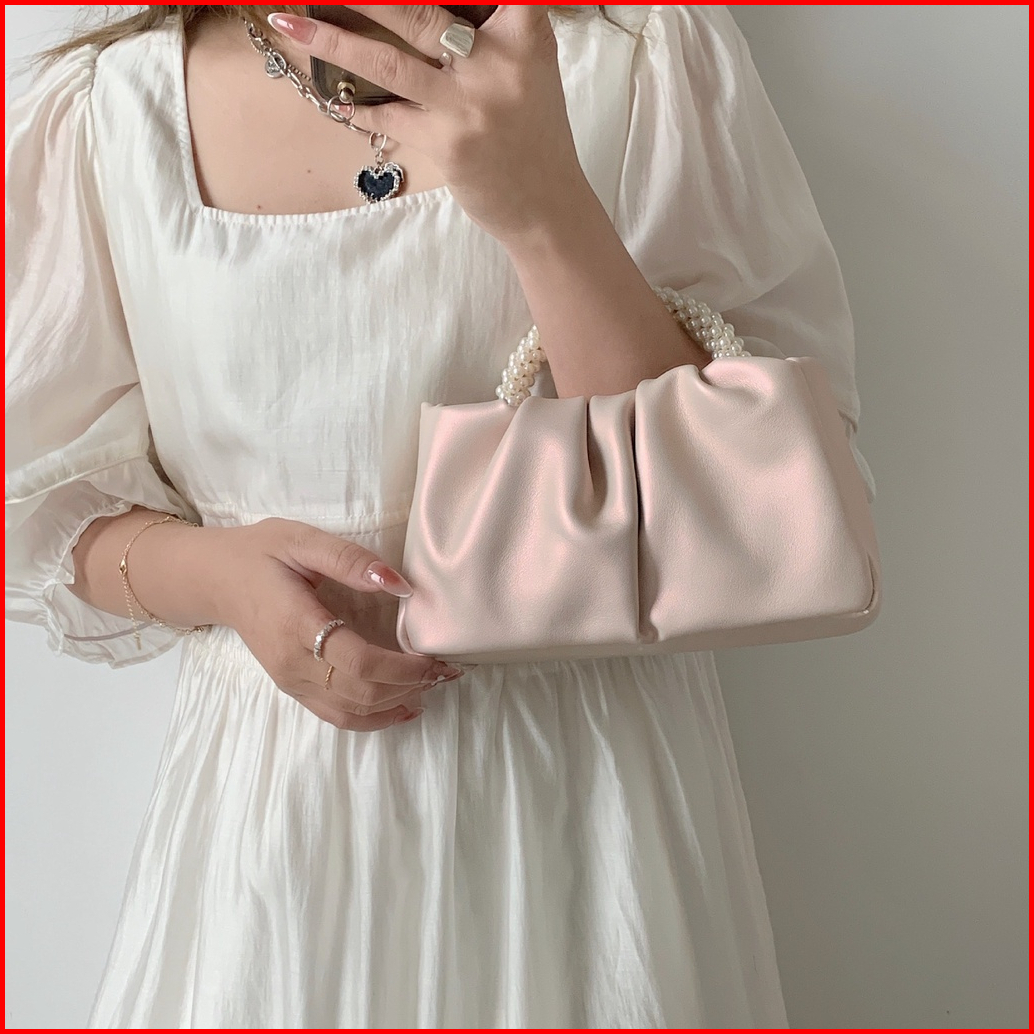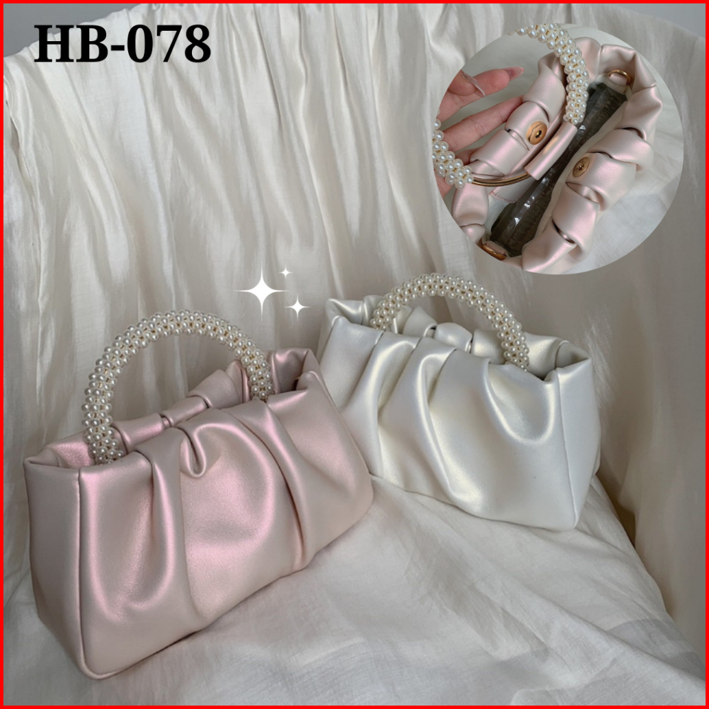 Tas Pesta Elegan Handle Mutiara Clutch Wanita Satin Mengkilap Elegan Untuk Kondangan Acara Resmi Hb078