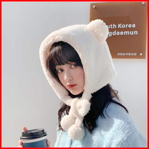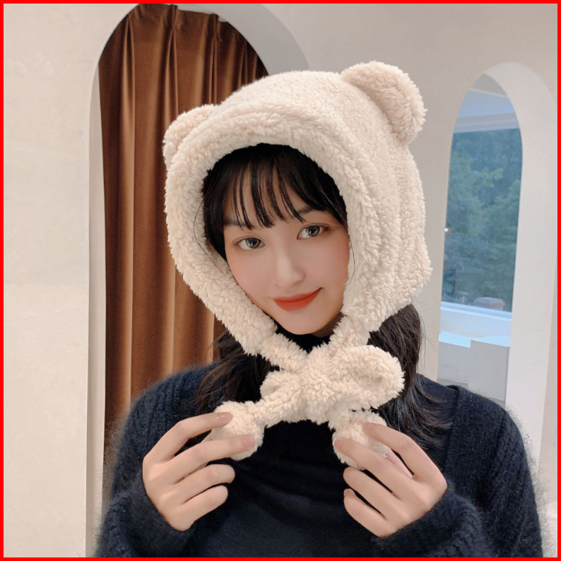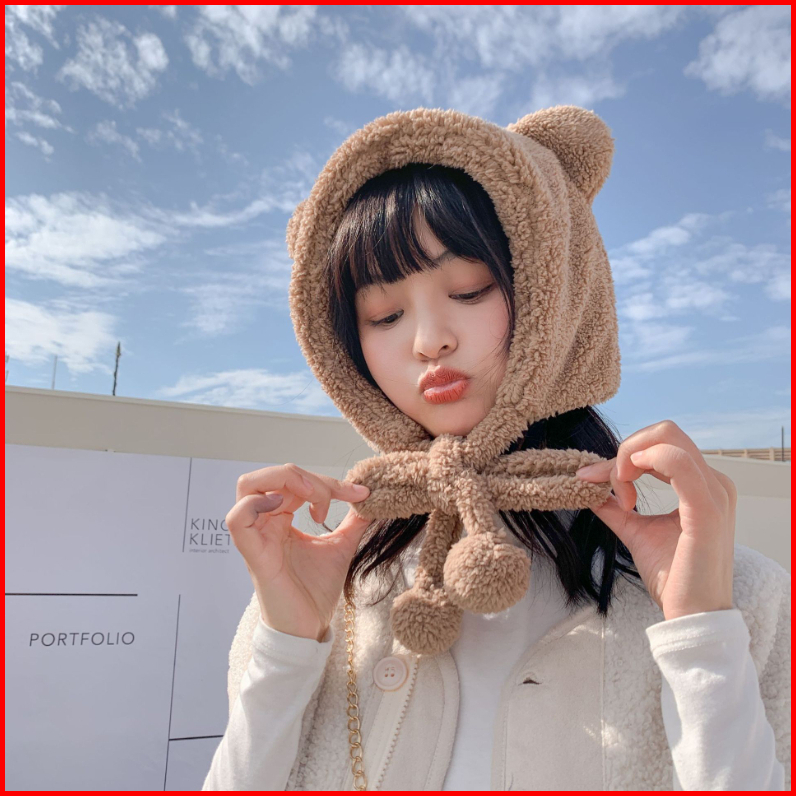 Topi Kupluk Syal Bulu Musim Dingin Karakter Beruang Lucu