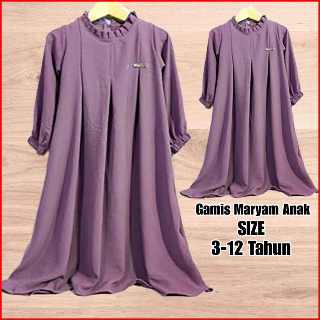Gamis Anak Maryam Crinkle Airflow Premium Series 3-12 Tahun Terbaru Princes Inara Shakilla Syar I Simple Polos Elegant B