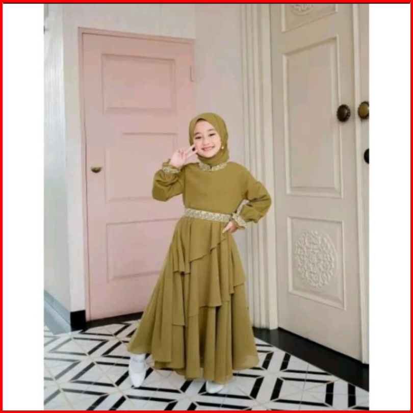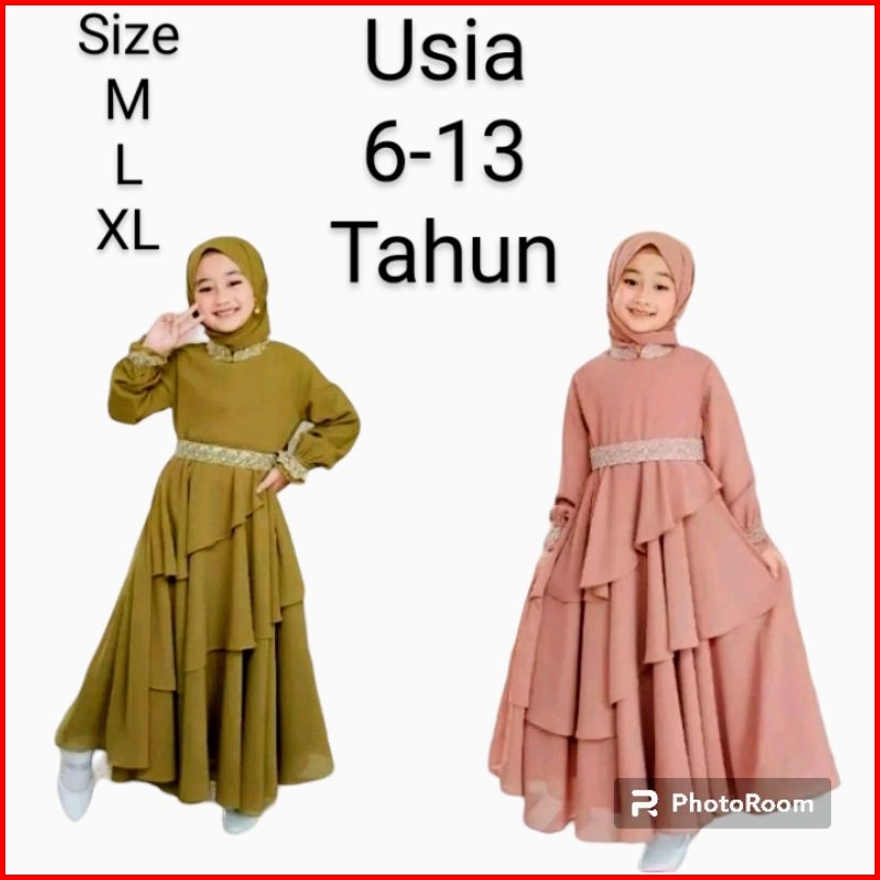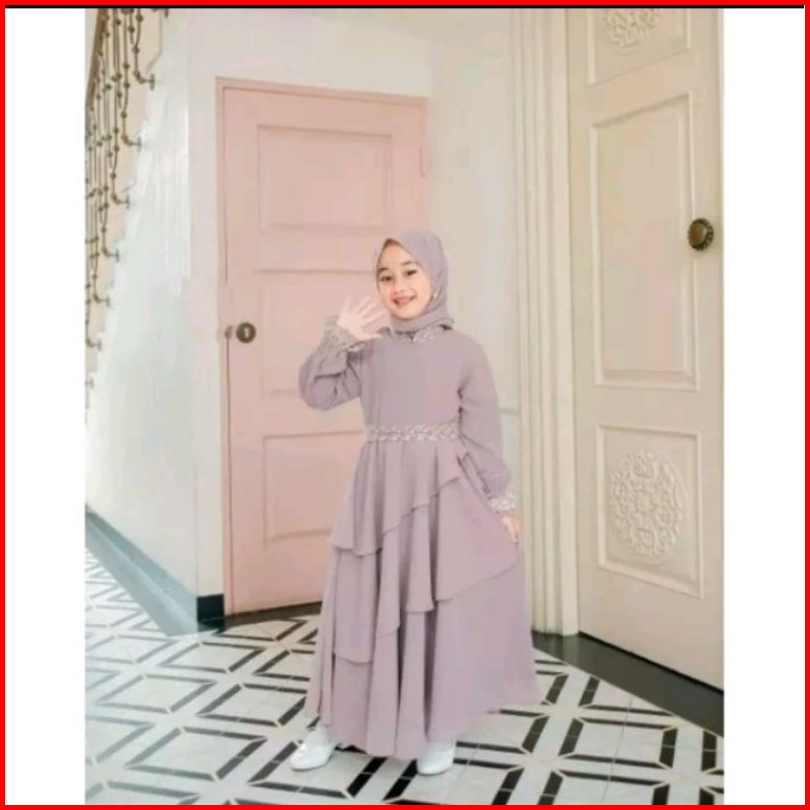 Invinov Mikhayla Kids Set Pasmina Baju Gamis Anak Usia 6 Sampai 13 Tahun Gamis Anak Terlaris Bahan Ceruti Bebydoll