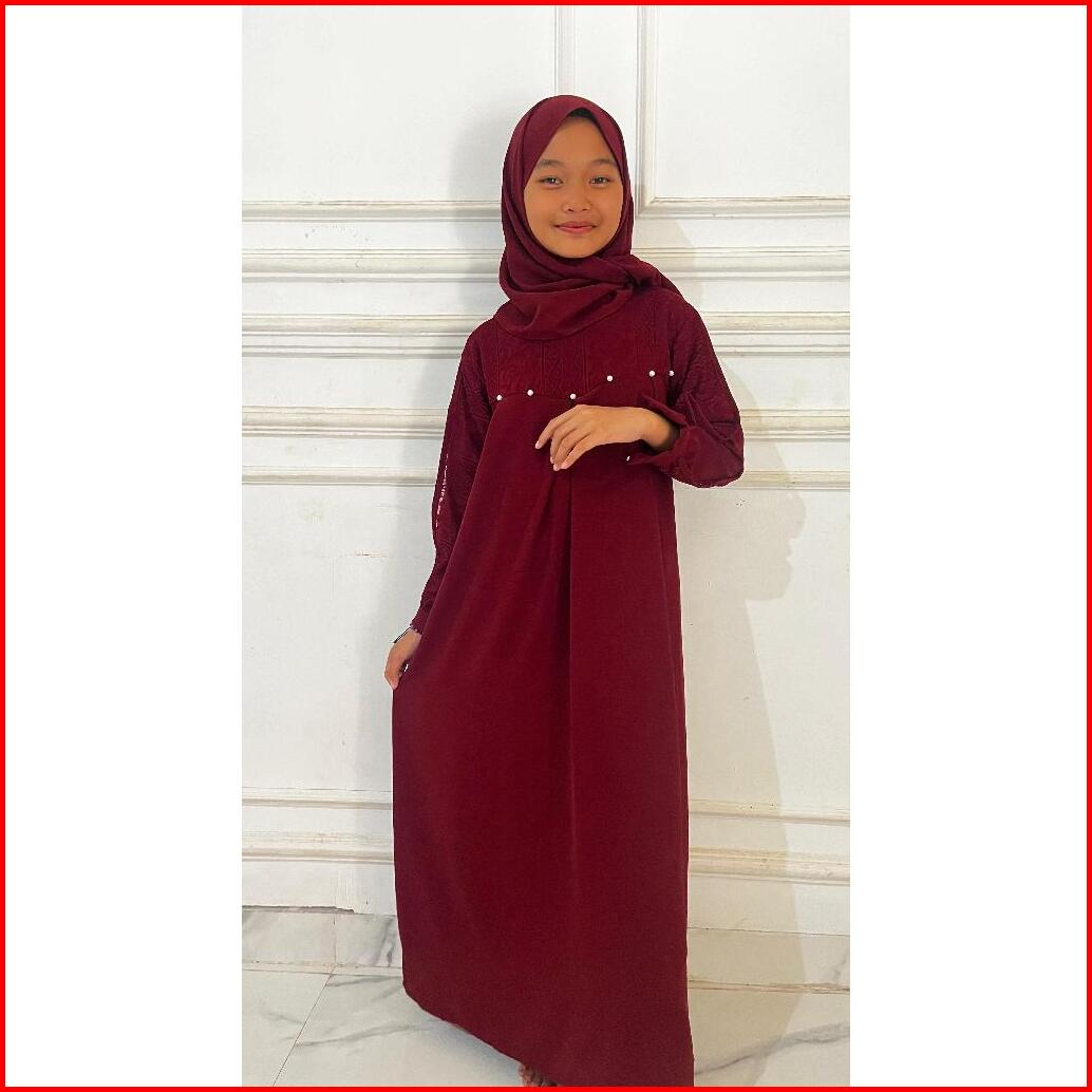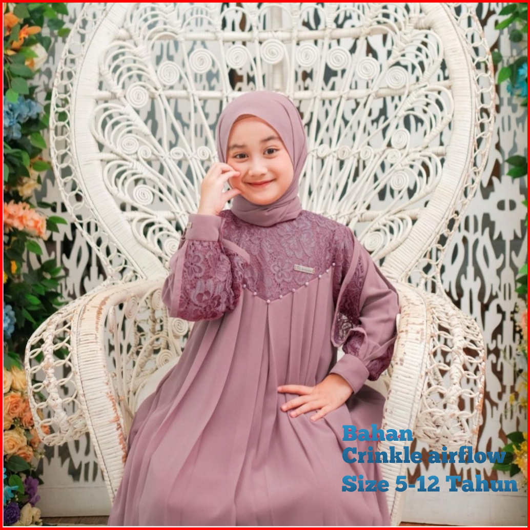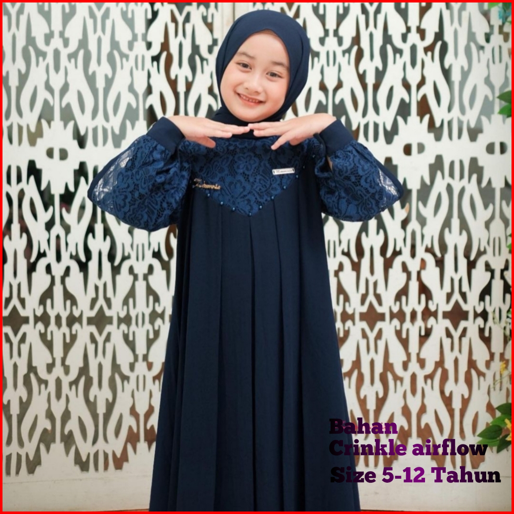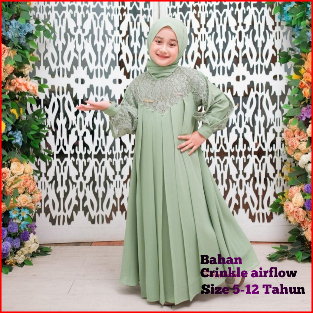 Inara Kids Gamis Anak Usia 5-13 Tahun Berbahan Crinkle Airflow Mix Brukat Dengan Aplikasi Mutiara Terbaru Dan Terlaris 2