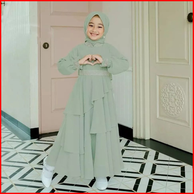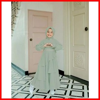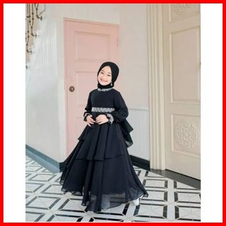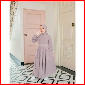 Dress Anak Peerempuan Mikayla Kids Kf Gamis Anak Perempuan Umur 7 8 9 Tahun Free Pashmina Bahan Ceruty Babydoll Full Pur