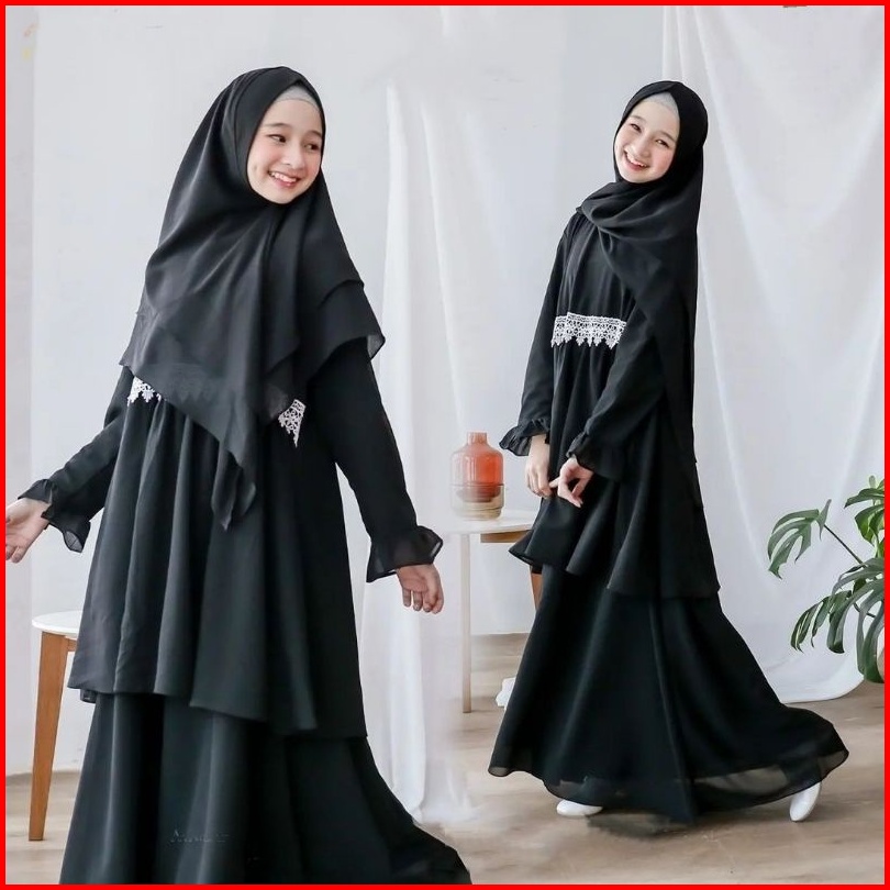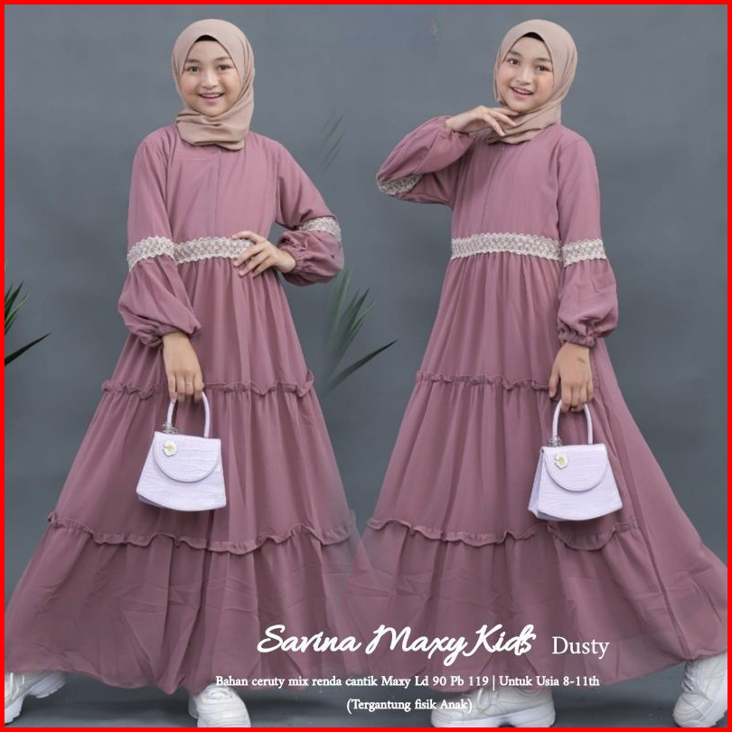 Gamis Anak Tanggung Perempuan Usia 10 11 12 13 14 15 Tahun Aryana Syar I Kids Bahan Ceruty Babydoll Gamis Syar I Anak