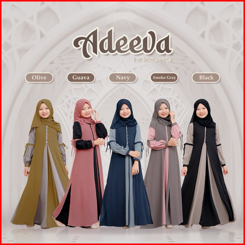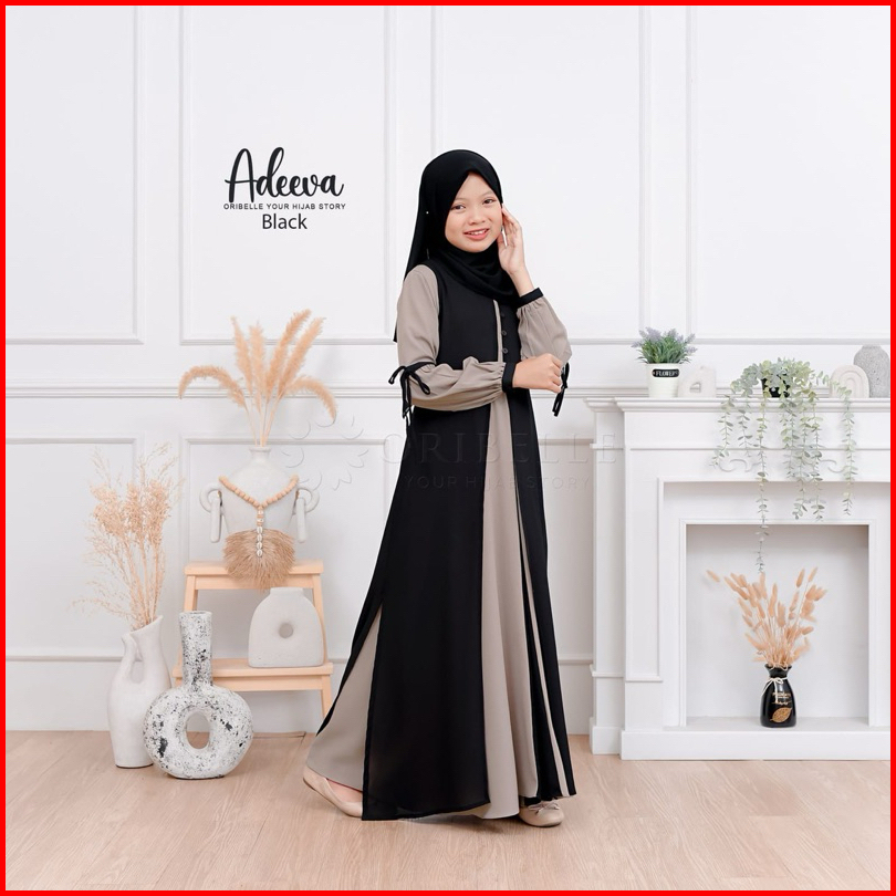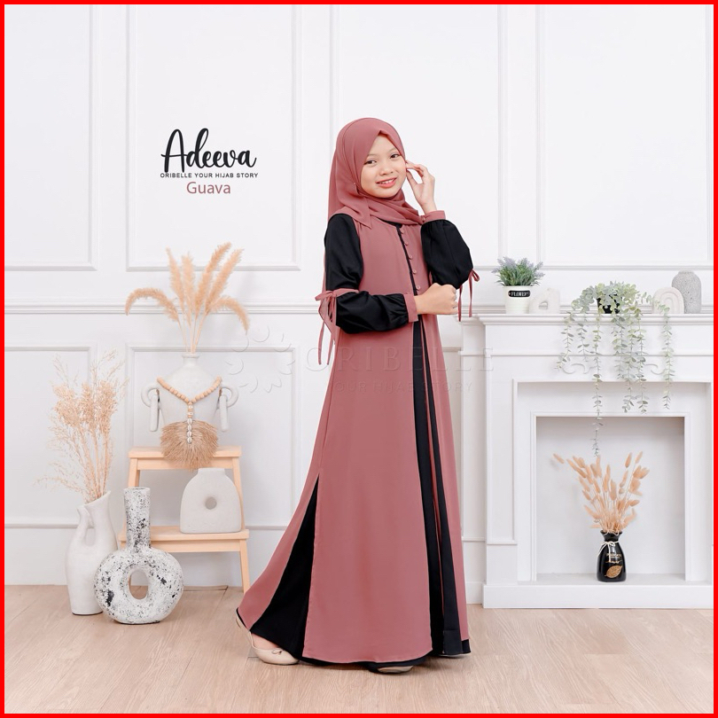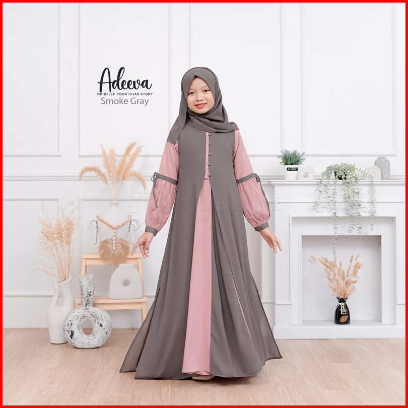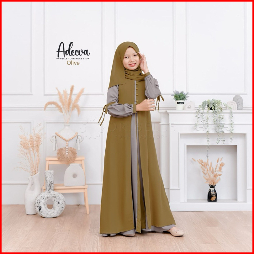 Adeeva Kids Plus Kerudung Baju Gamis Anak Tanggung Perempuan Usia 10-15 Tahun Bahan Crinkle Mix Ceruty Babydoll Gamis Ko