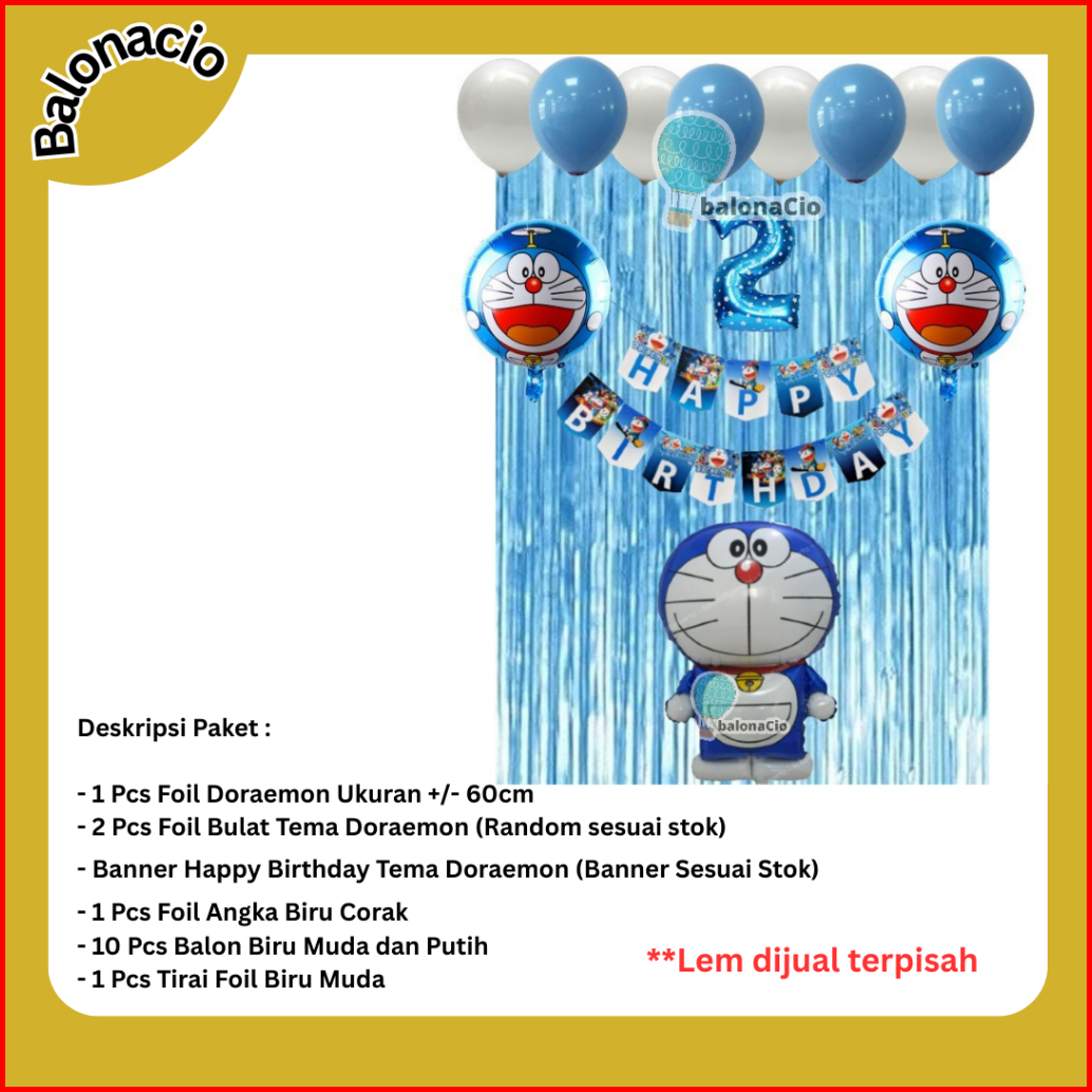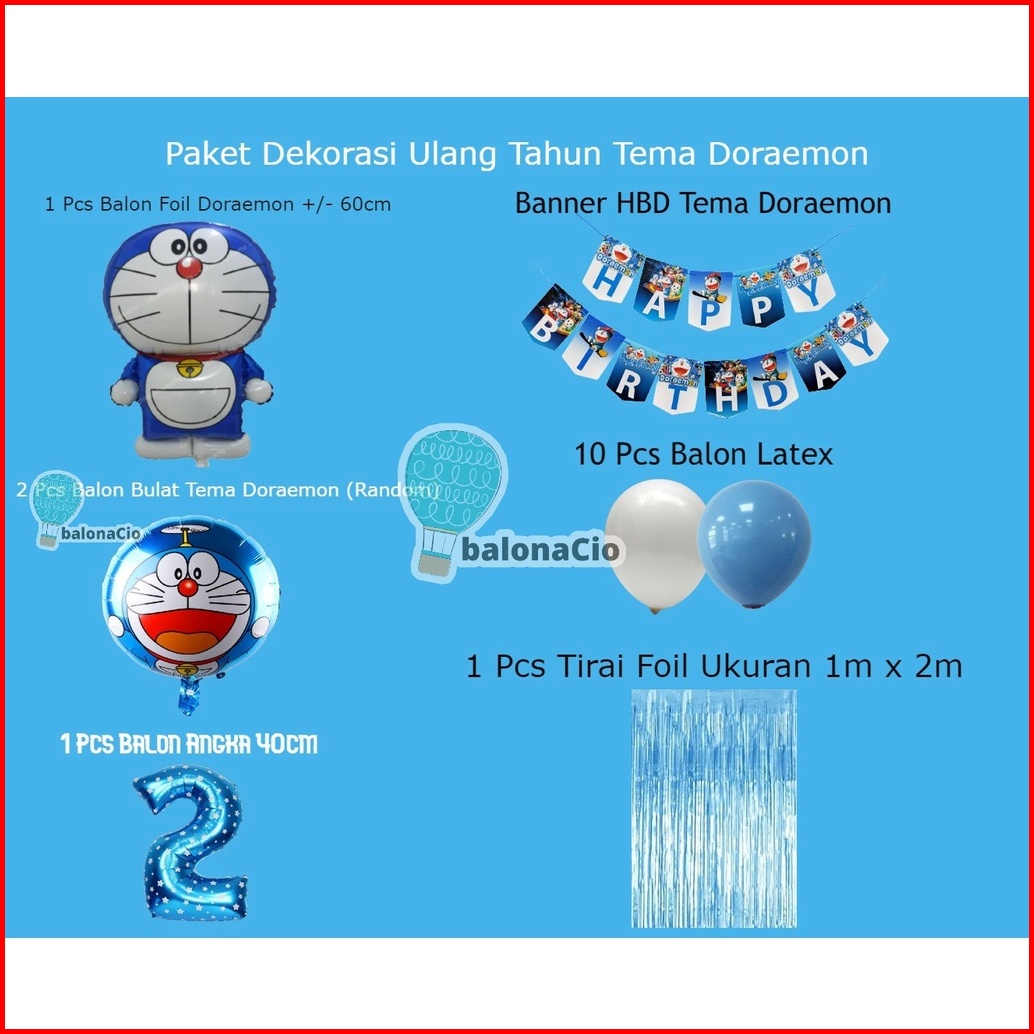 Paket Dekorasi Ulang Tahun Tema Doraemon Balon Happy Birthday Doraemon