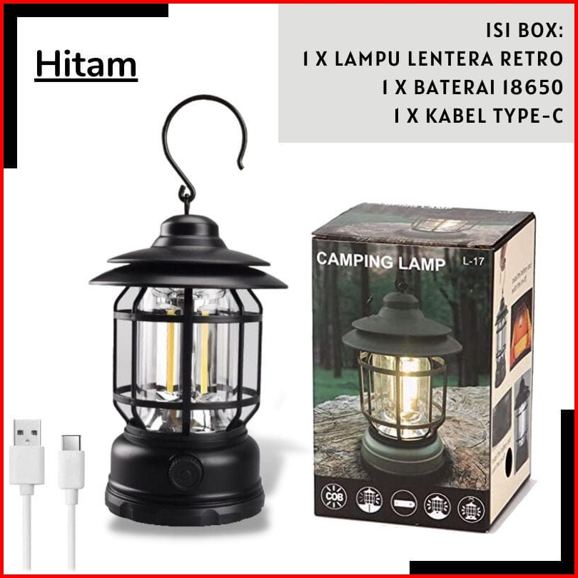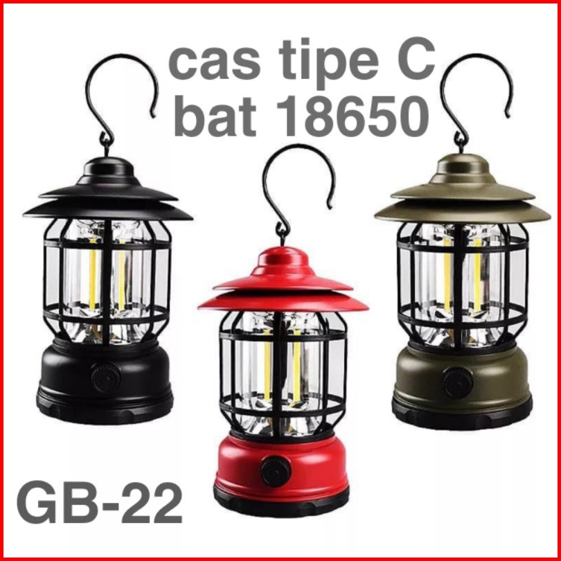 Lampu Lentera Retro - Tenda Camping Emergency Lamp Bat 18650 - K20a