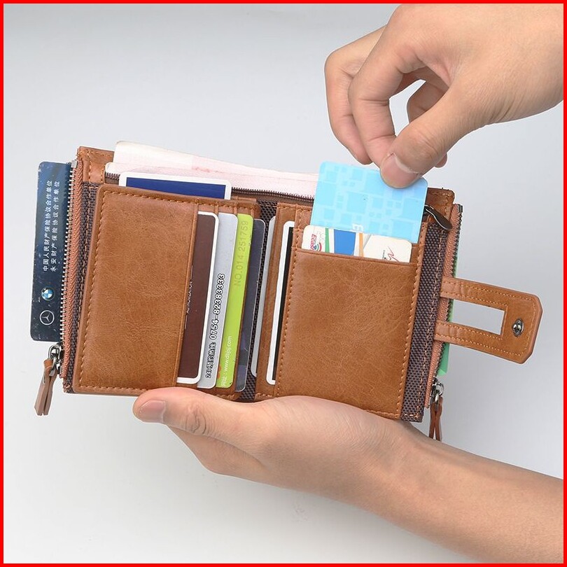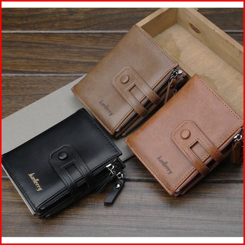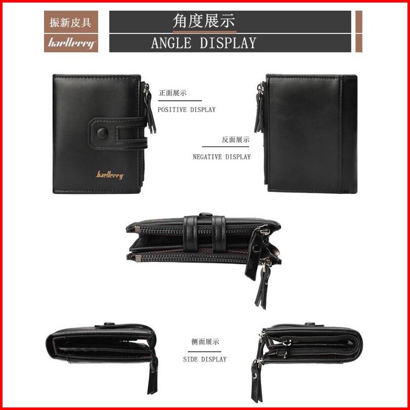 Dompet Pria Baellerry Premium Kulit Pu Lipat Modern Banyak Slot Kartu Kompartemen Uang Resleting Aman Model Elegan Fungs