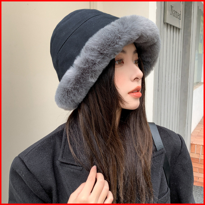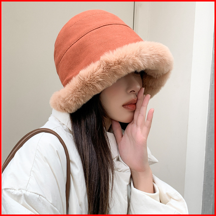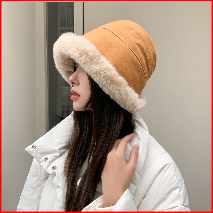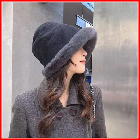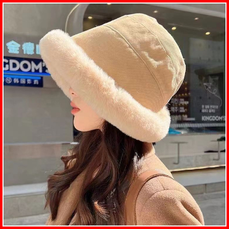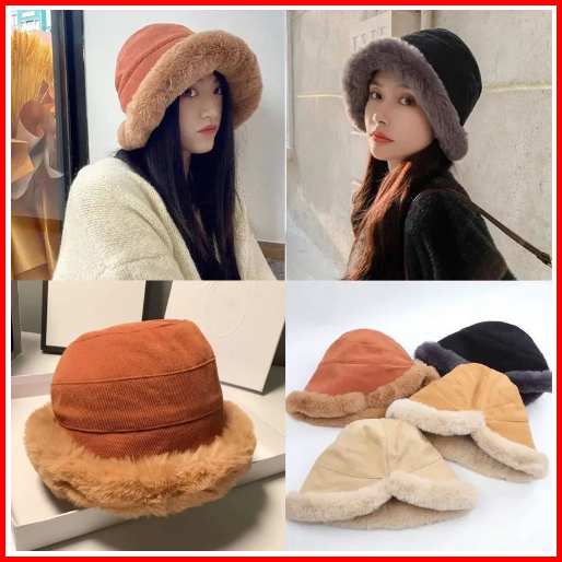 Topi Bucket Wanita Musim Dingin Bulu Winter Hat