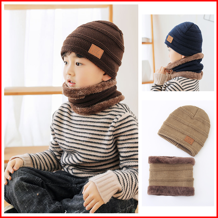Topi Kupluk Rajut Dan Syal Anak 1 Set Winter Topi Musim Dingin
