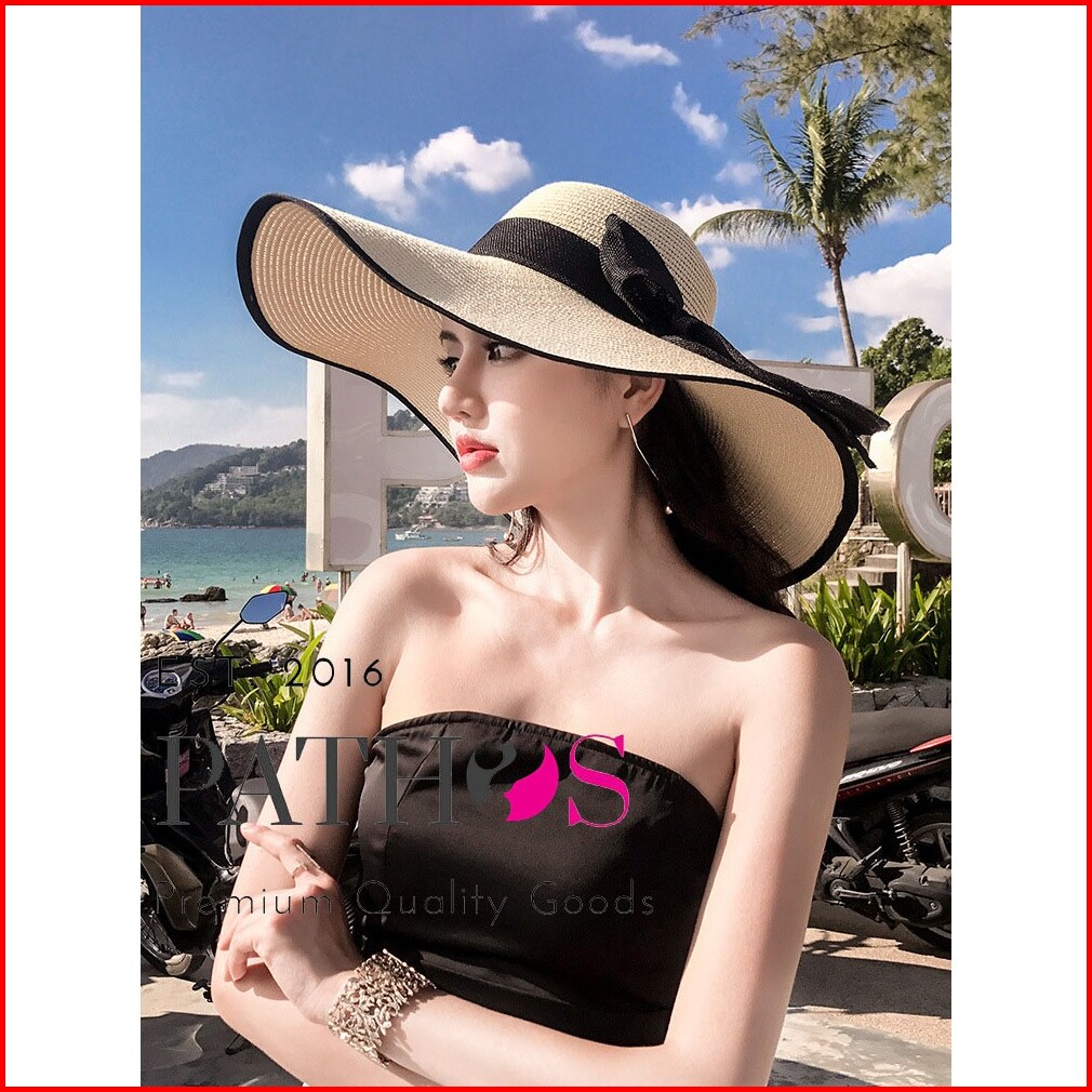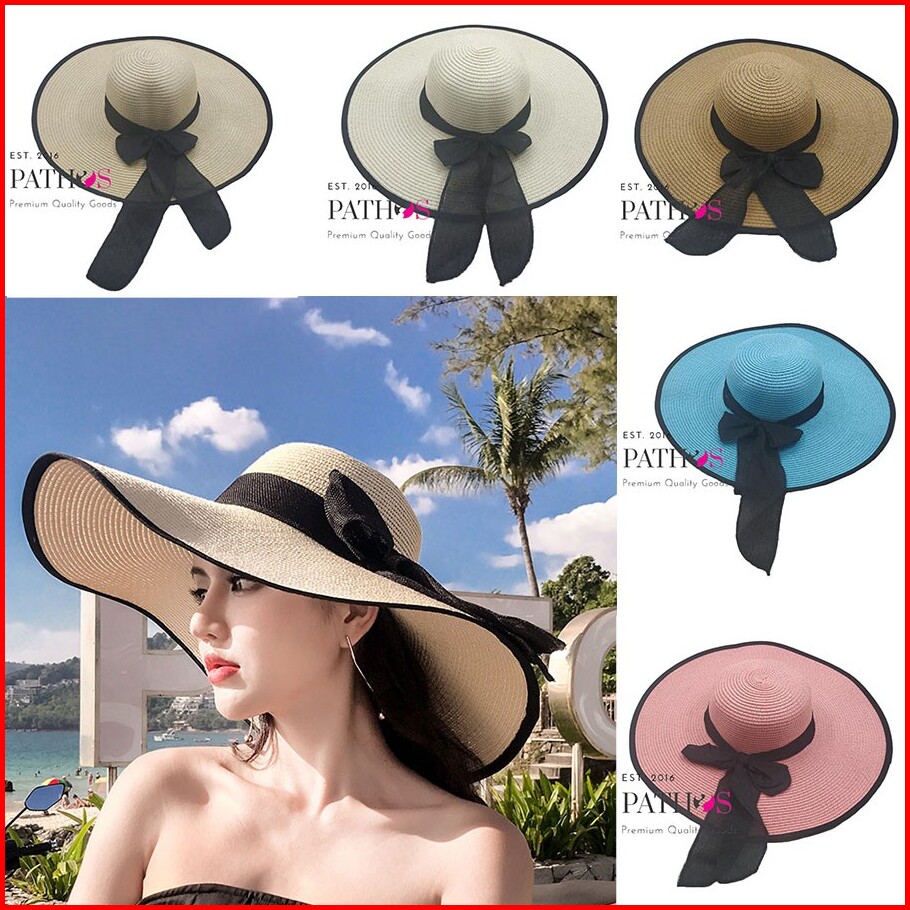 Topi Pantai Wanita Summerhat Sun Visor Papper List Pita Hitam Preto Import