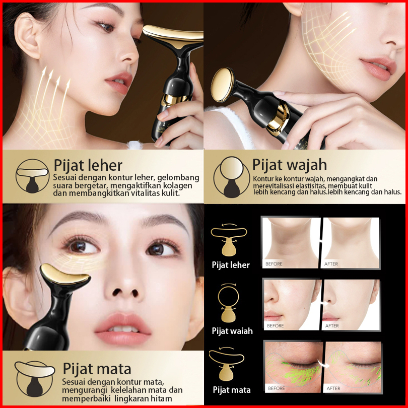 2024 3 In 1 Alat Pijat Pengencang Kulit Wajah Dan Leher Dan Mata Setrika Wajah Alat Perawatan Wajah