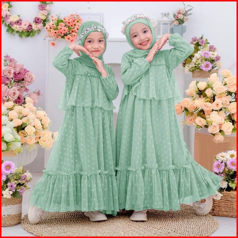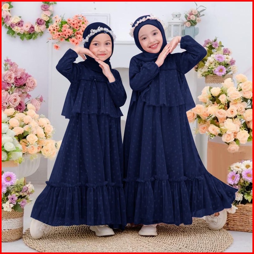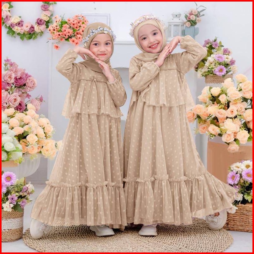 Gamis Anak Emi Polkadot Muslim Lebaran Bahan Tile