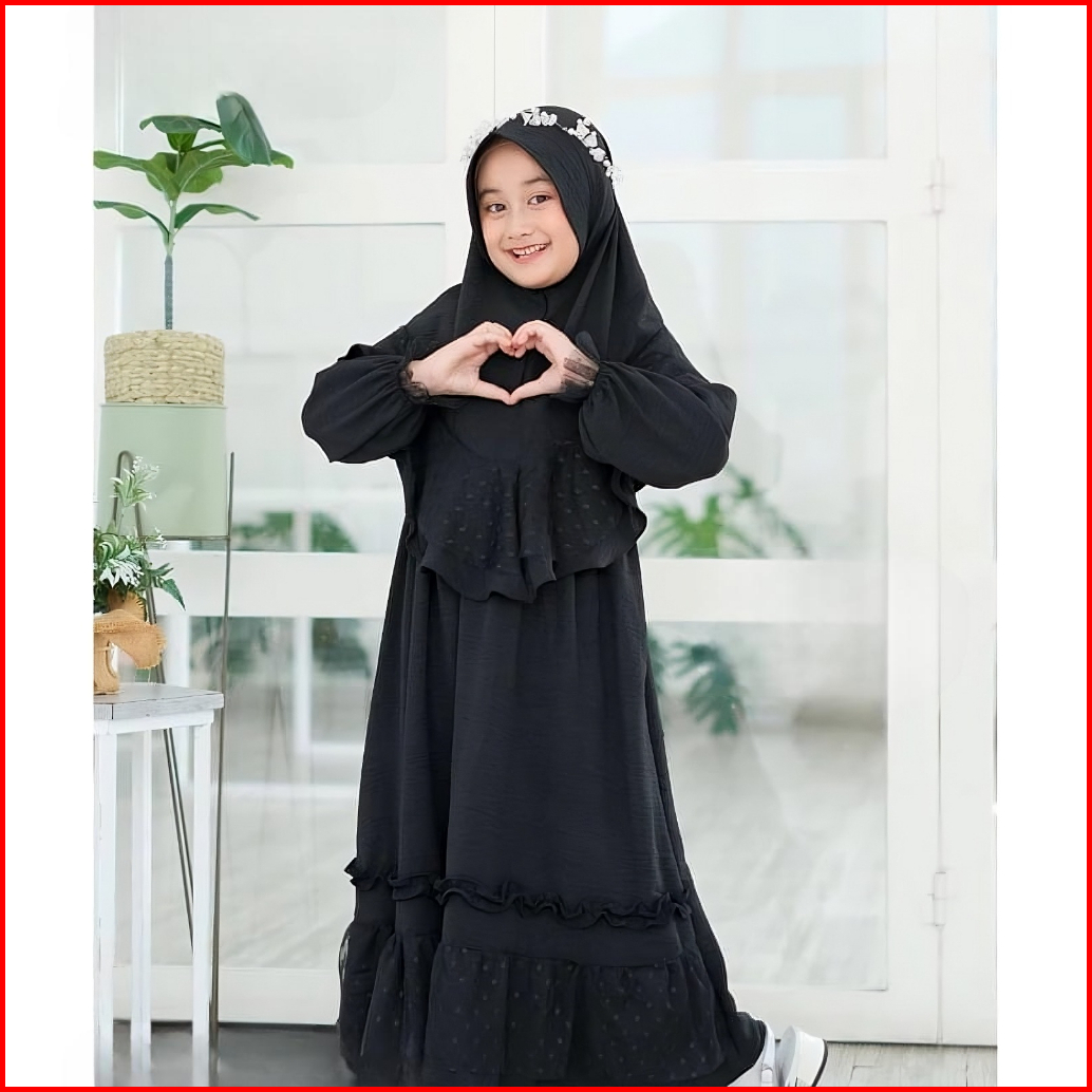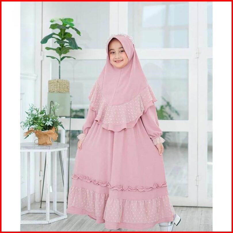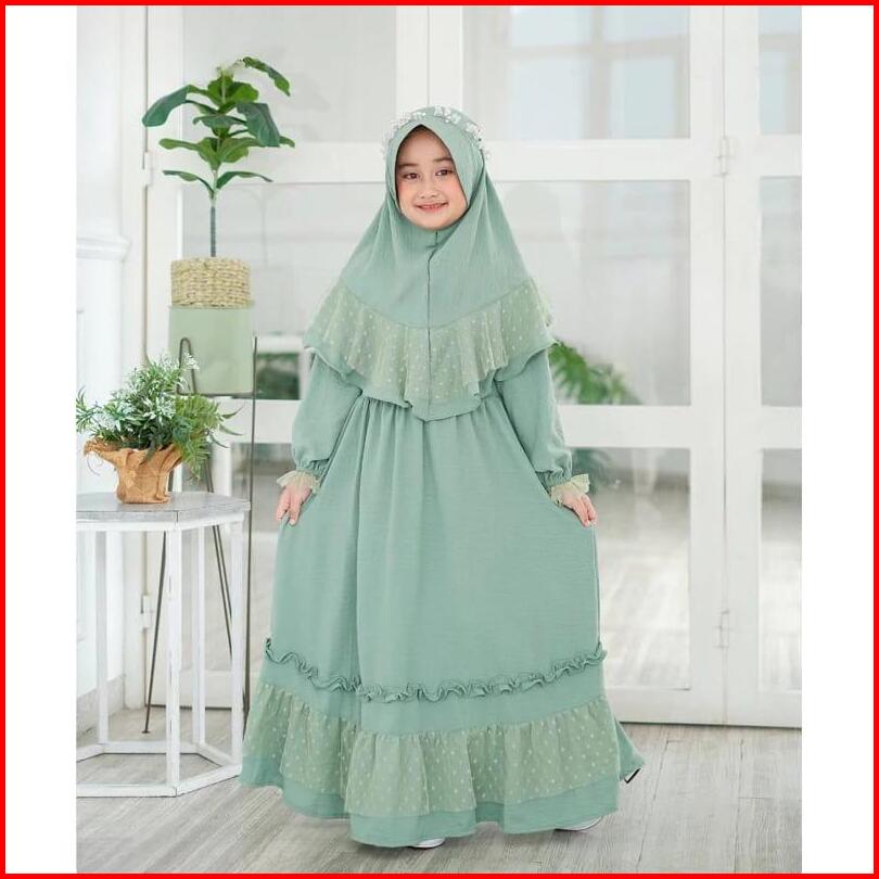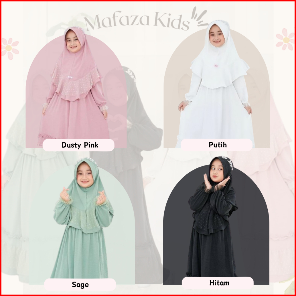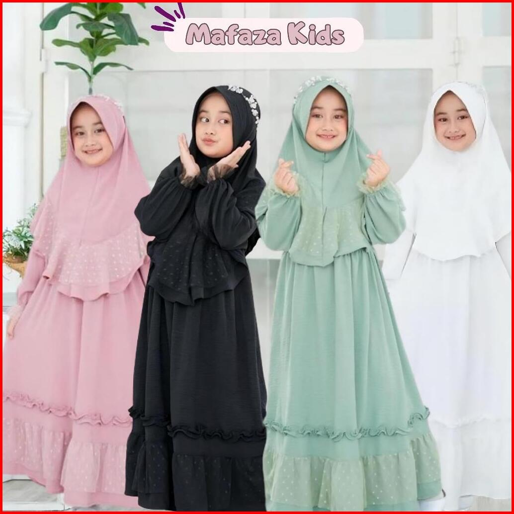 Mafaza Kids Gamis Anak Perempuan Set Hijab 3-11 Tahun Gamis Crinkle Mix Tile Dot Size M-l-xl-xxl Gamis Lebaran Terbaru B