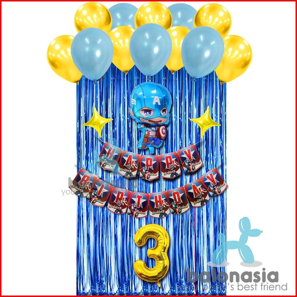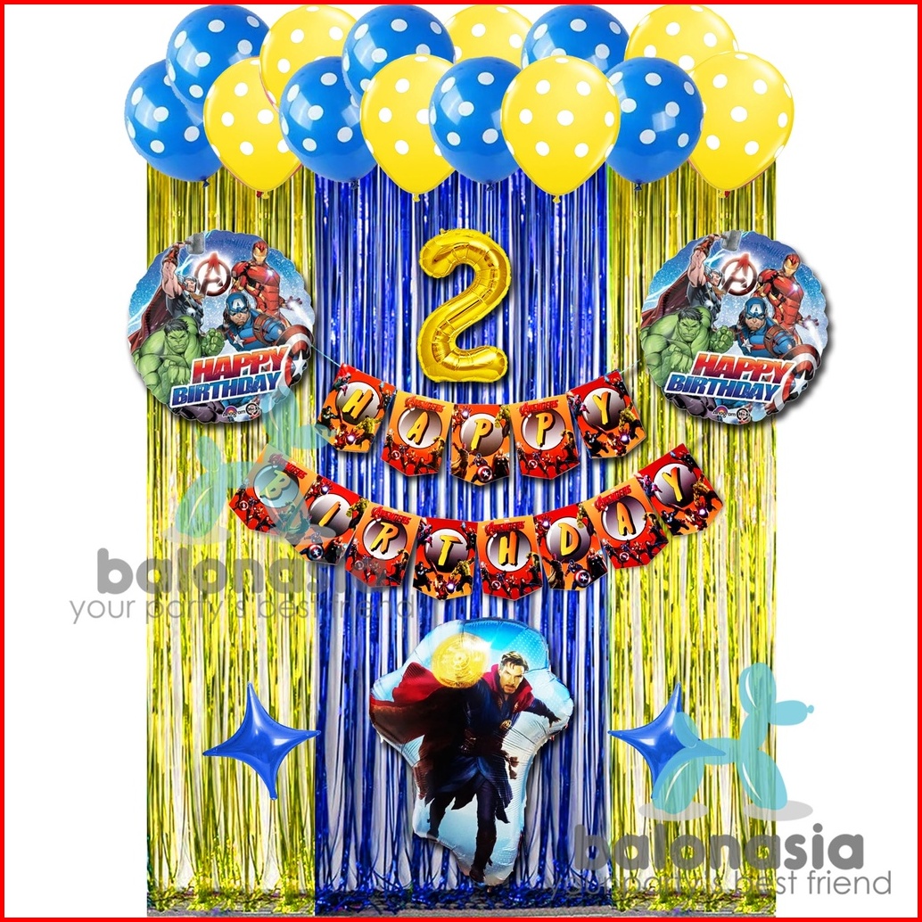Paket Set Dekorasi Ulang Tahun Anak Spiderman Captain Amerika Avenger Doctor Strange Hulk