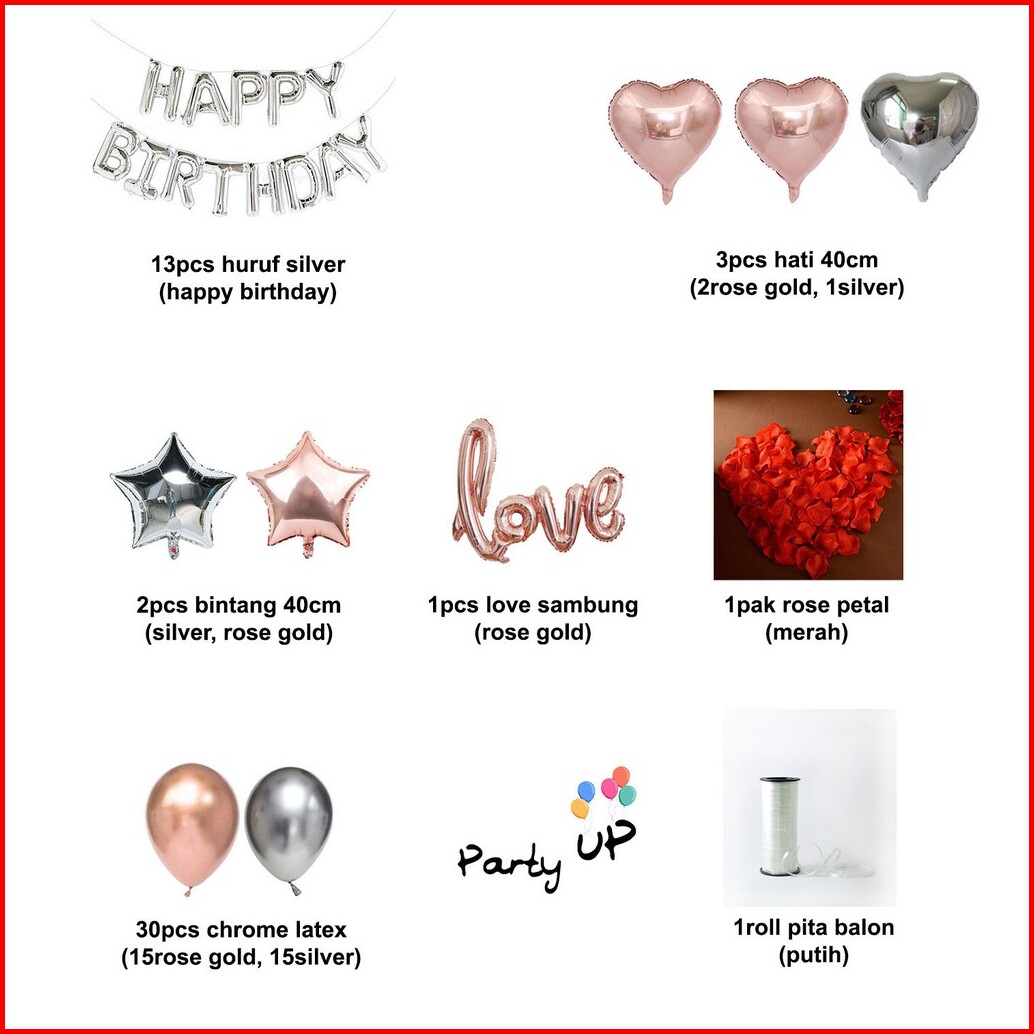 Paket Romantis Silver Rose Happy Birthday Love Decoration